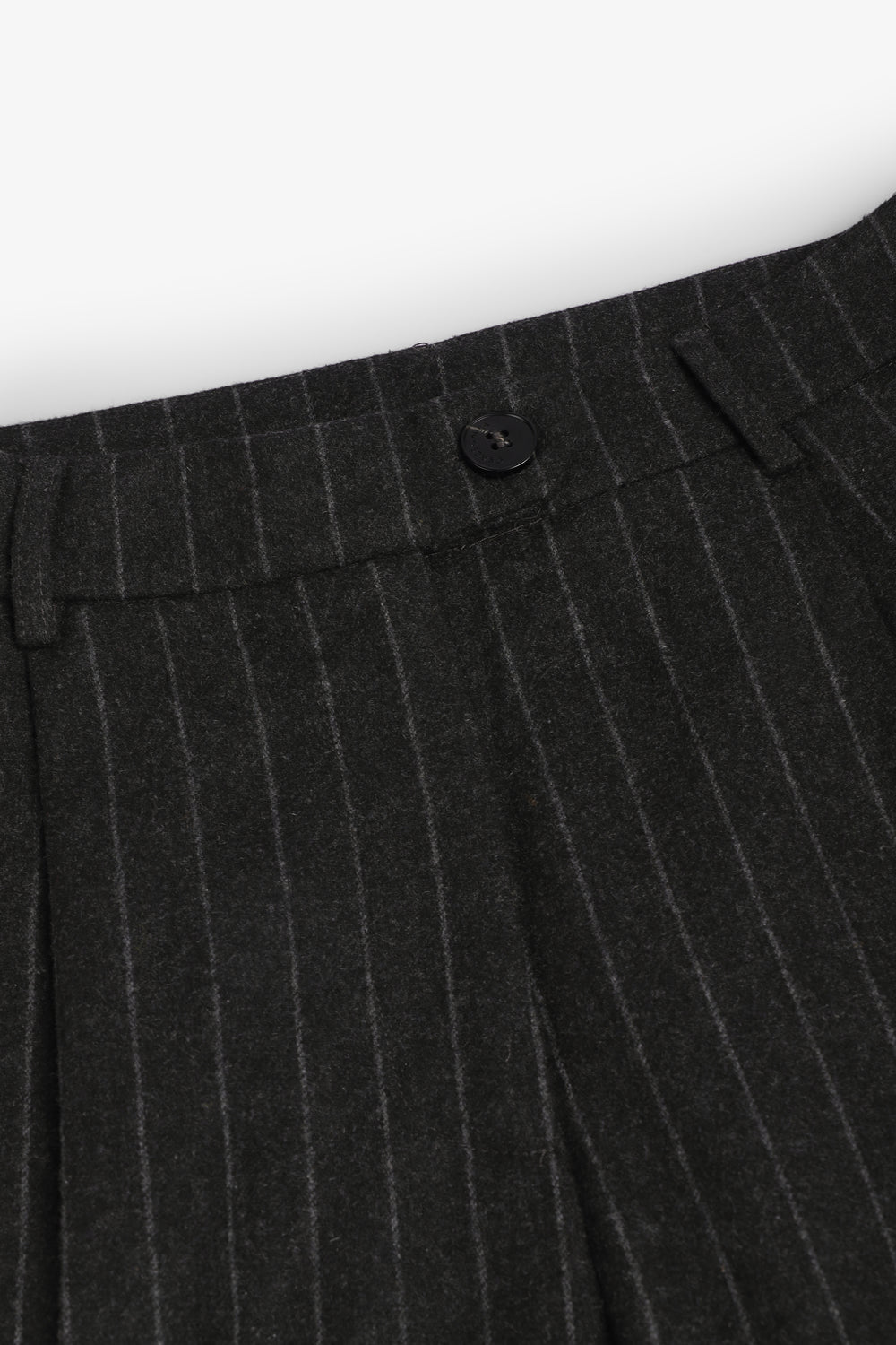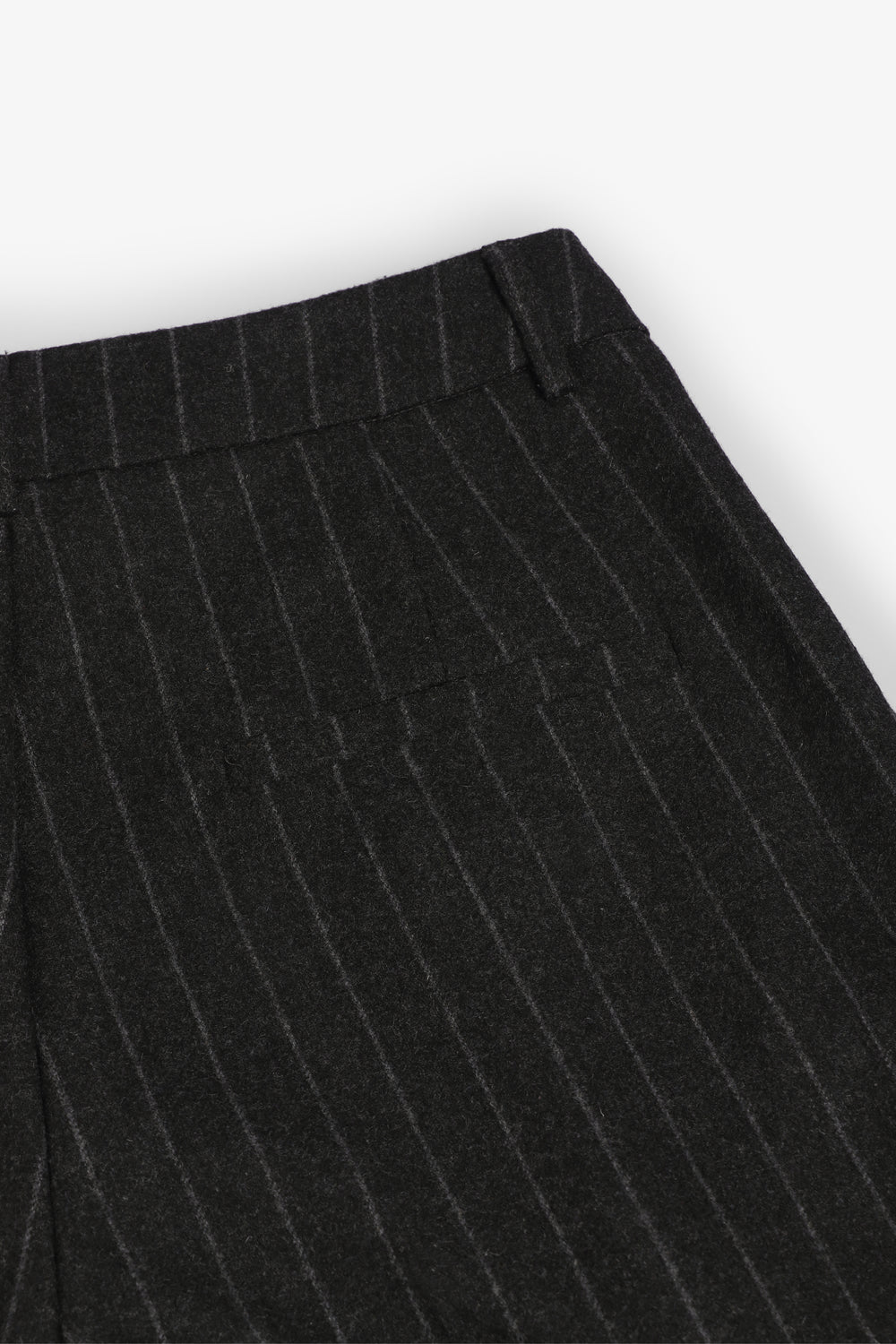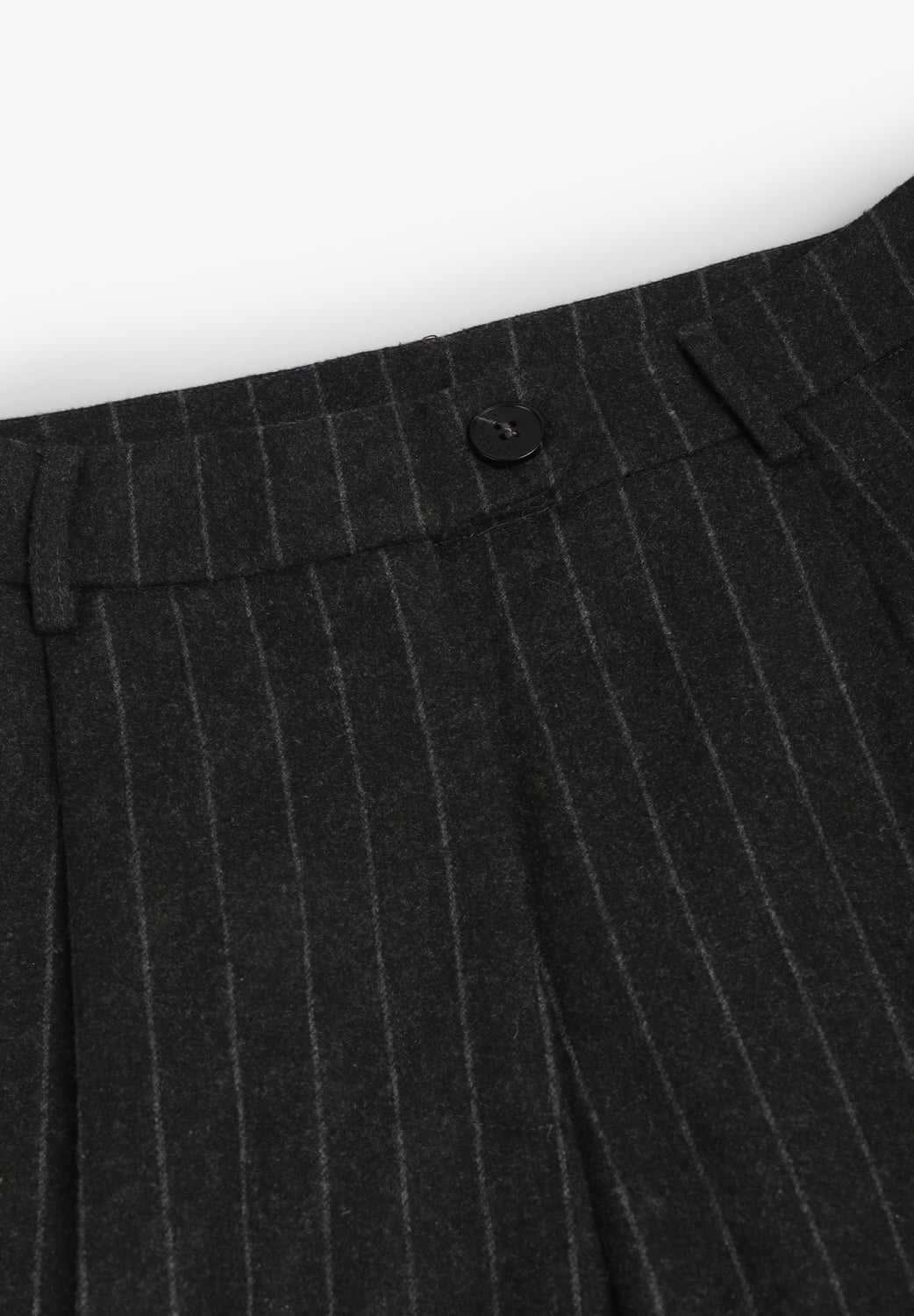 Pantalón Grace & Mila confeccionado en 85% poliéster y 15% lana. Presentan una pernera ancha, diseño de rayas finas y pliegues en la parte delantera, corte recto y detalles como el botón con efecto cuerno y bolsillos italianos.