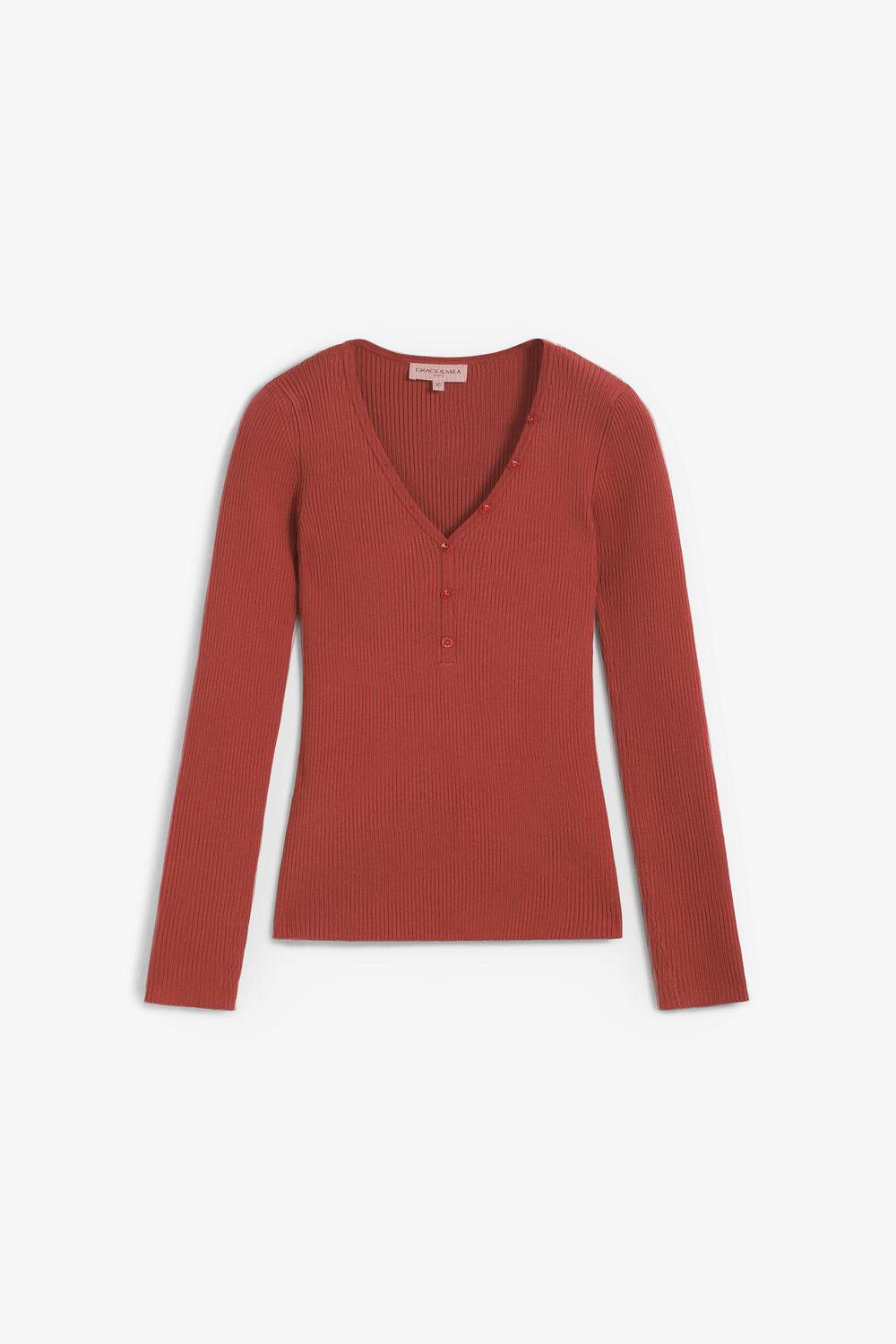 Jersey Grace & Mila confeccionado en 72% viscosa y 28% poliéster. Presenta un corte ajustado de manga larga, creando una silueta estilizada y cómoda. Cuello en V.