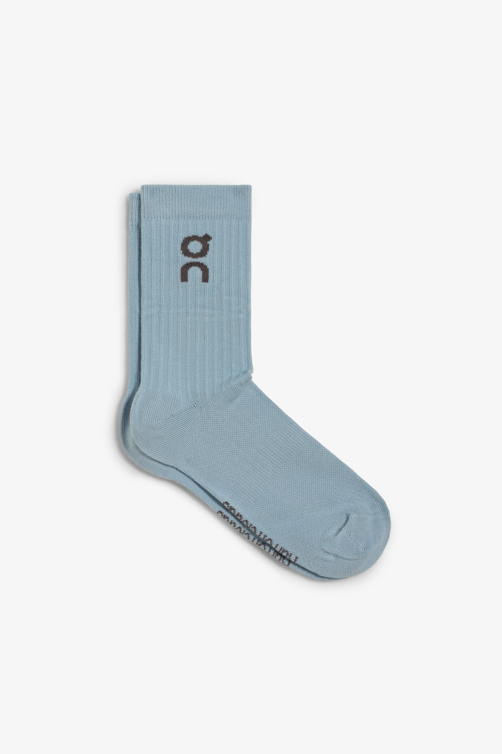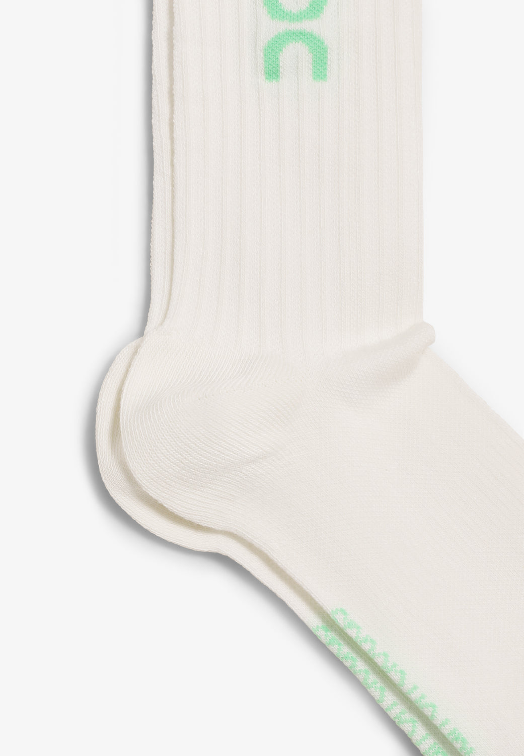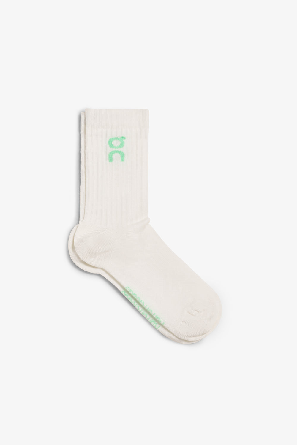 Calcetines ON confeccionados en 63% algodón orgánico, 33% poliamida y 4% elastano. Cuentan con una ventilación media, soporte del arco que se siente, estructura acanalada en la caña y detalle doble logotipo. Incluye juego de tres pares