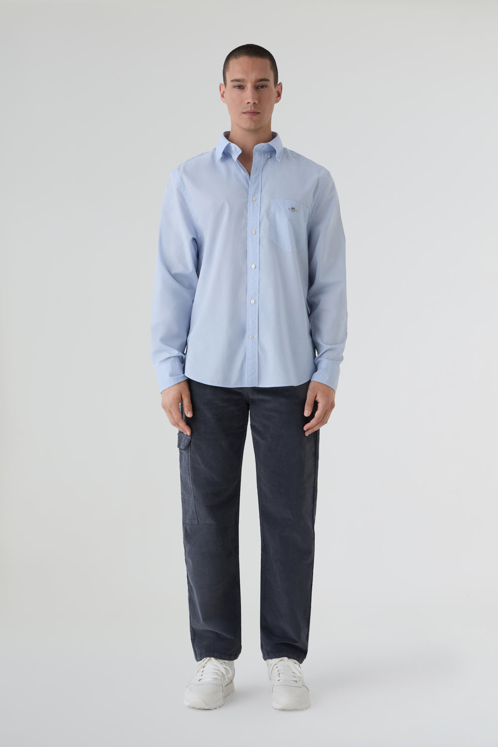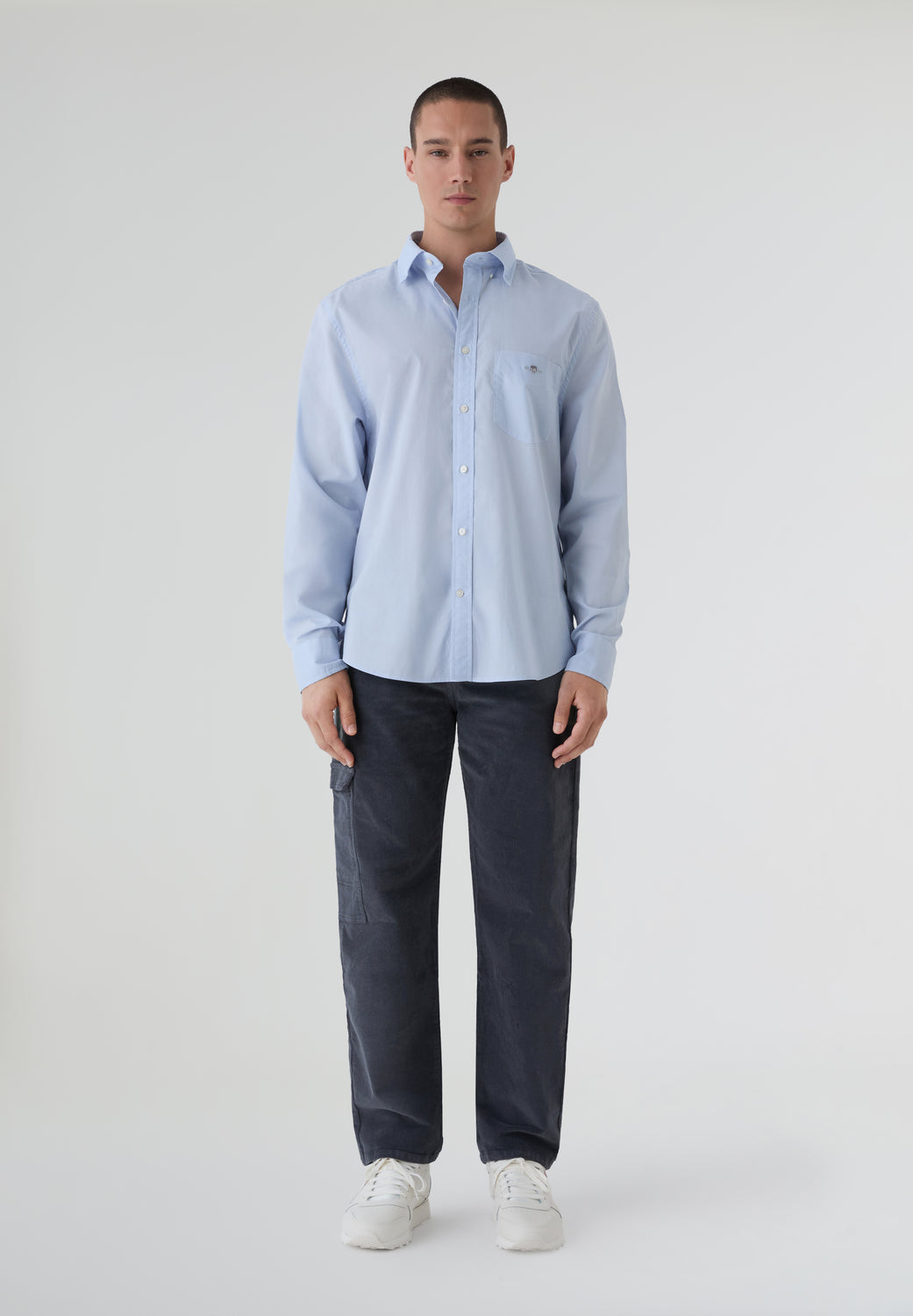 Camisa Gant confeccionada en tejido de popelina. Cuenta con el logotipo bordado en el pecho, bajo curvado, puños normales y cuello francés.