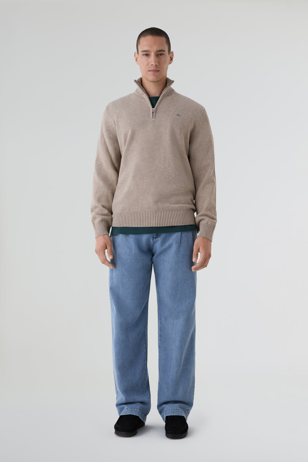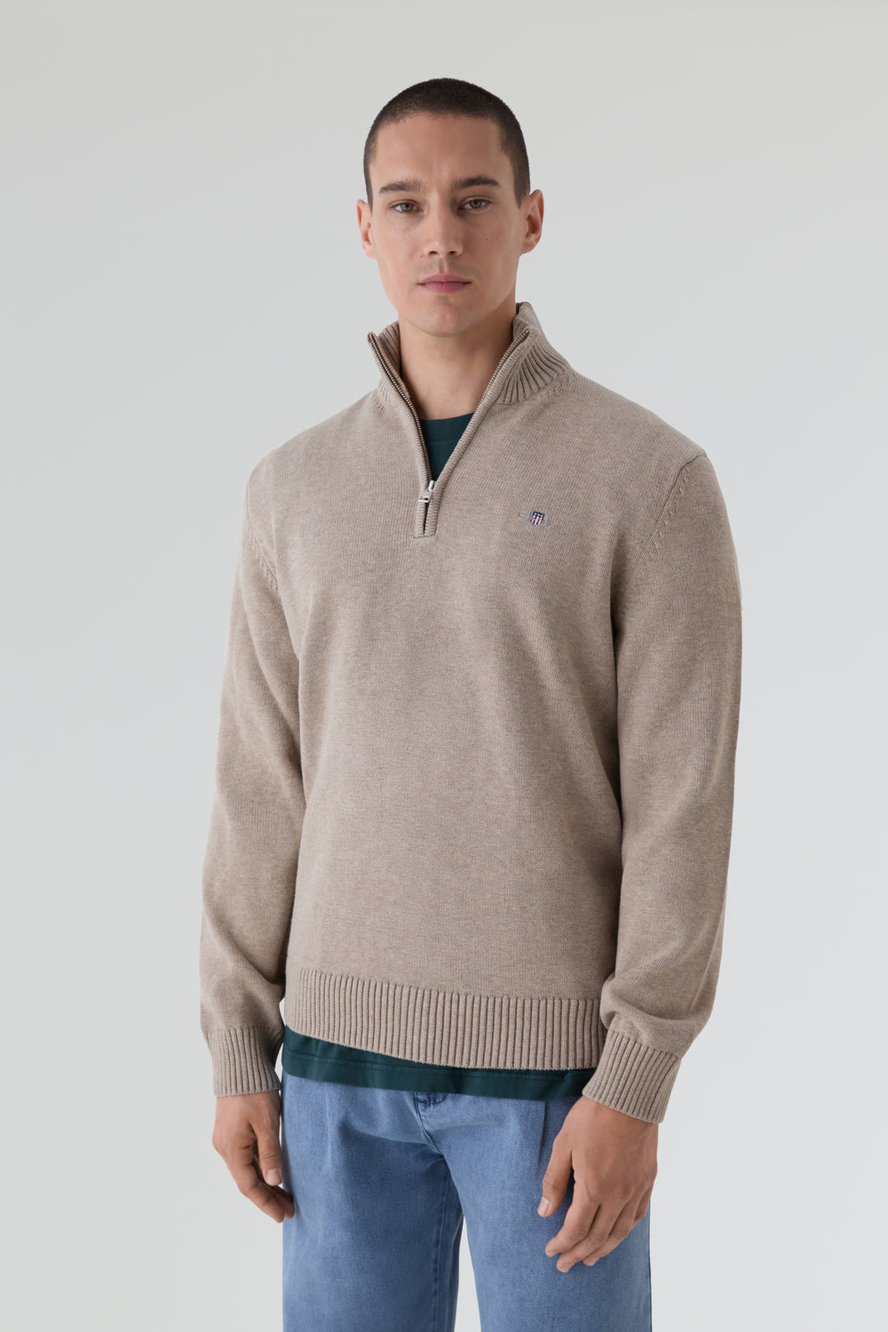Jersey Gant confeccionado en 100% algodón y corte normal. Cuenta con un cuello de media media cremallera y logotipo de la marca bordado en el pecho. Bajo y puños acanalados.