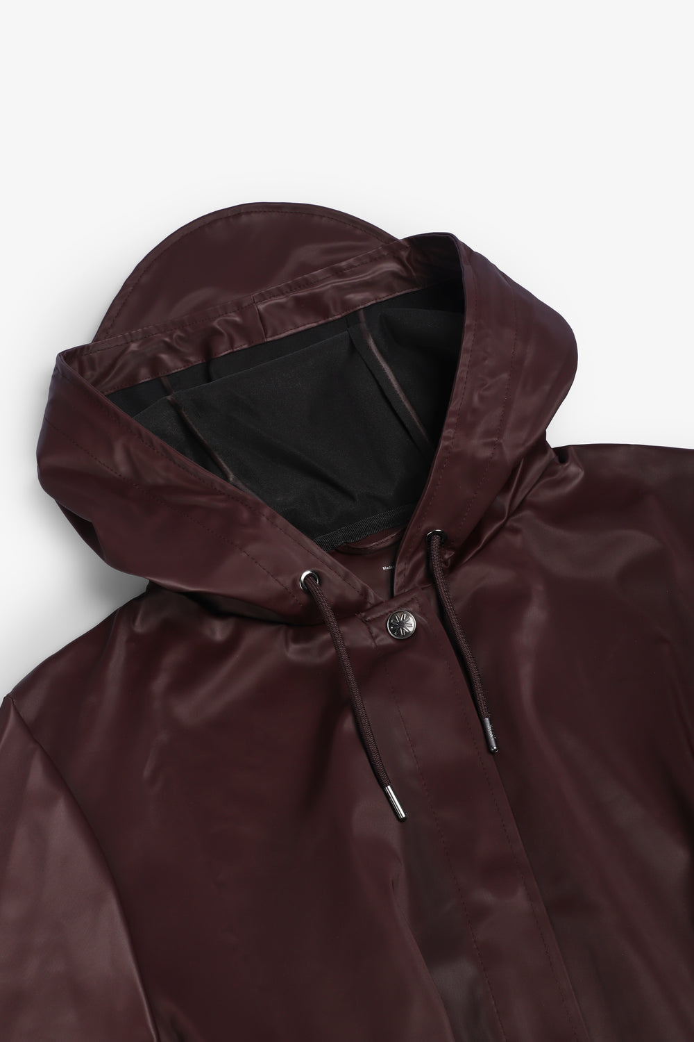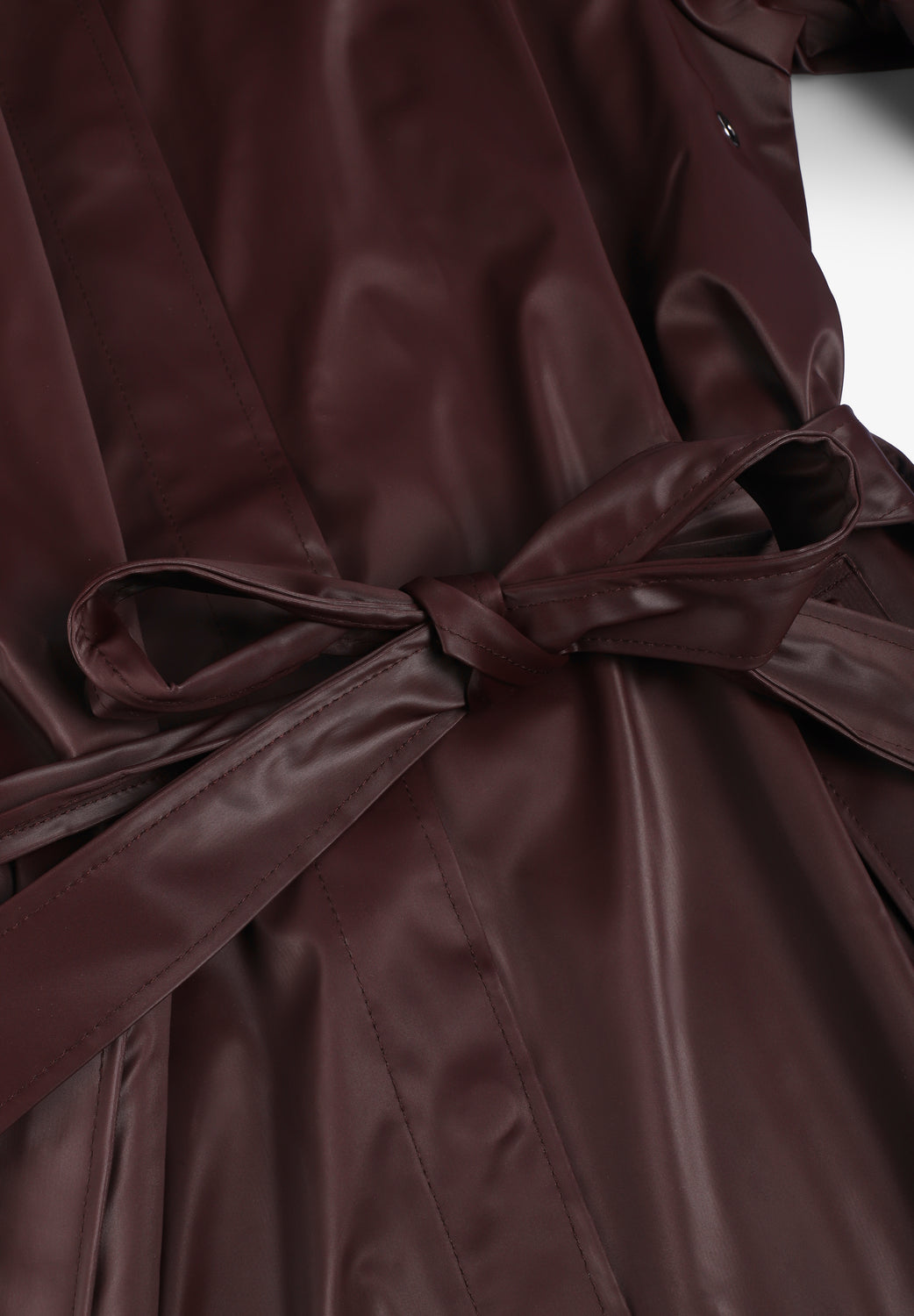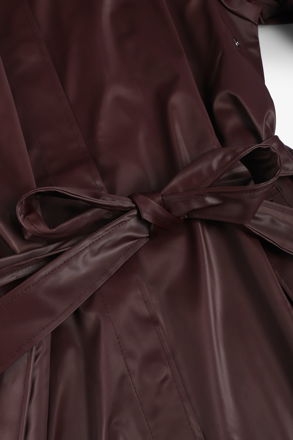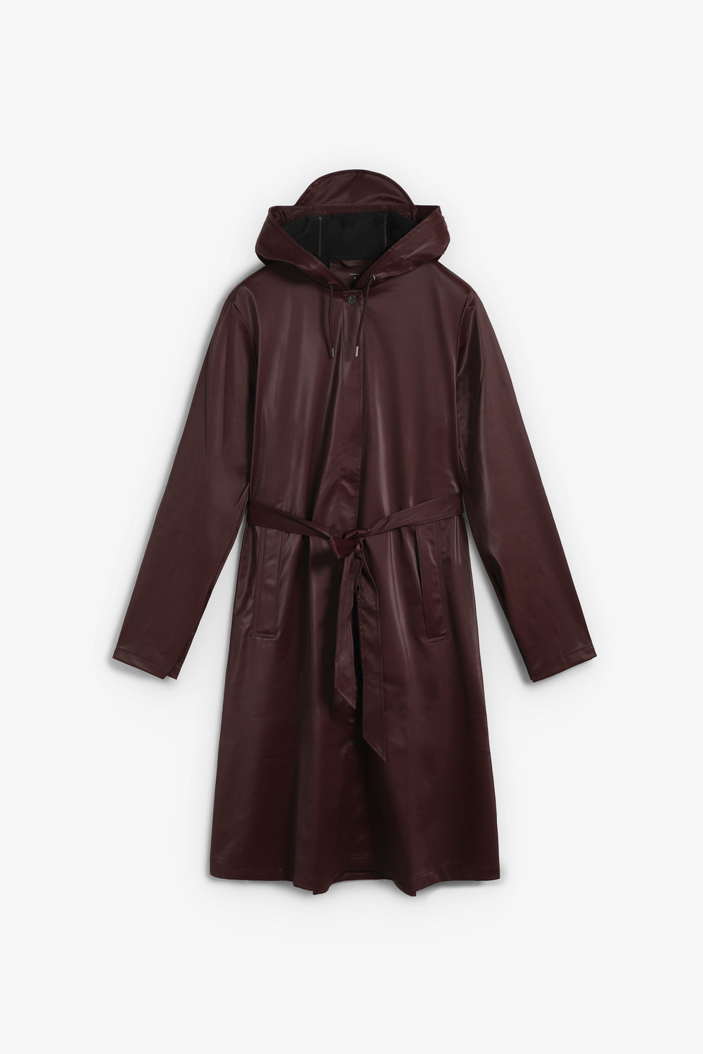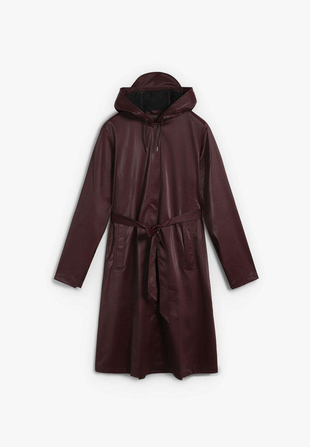 Chaqueta Rains confeccionada en 100% poliéster. Se trata de un impermeable caracterizado por silueta en forma de A y cinturón que marca la cintura de manera elegante. Incluye una capucha con cordón de ajuste y visera integrada, bolsillos laterales, cierre mediante botones de presión ocultos y puños ajustables con botones de presión. Costuras selladas que aportan resistencia al agua y viento y ojales en la axilas que garantizan ventilación y transpirabilidad.