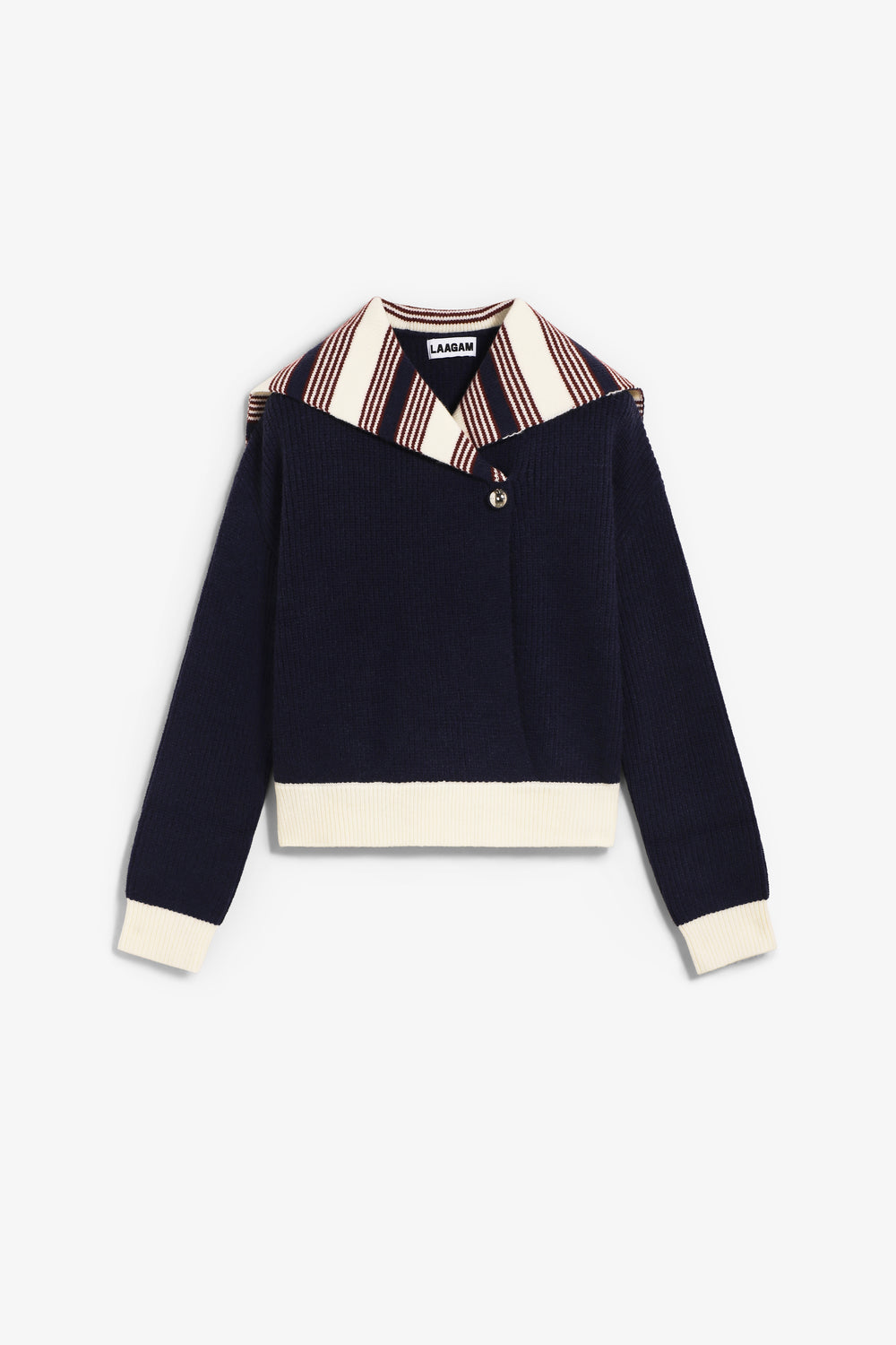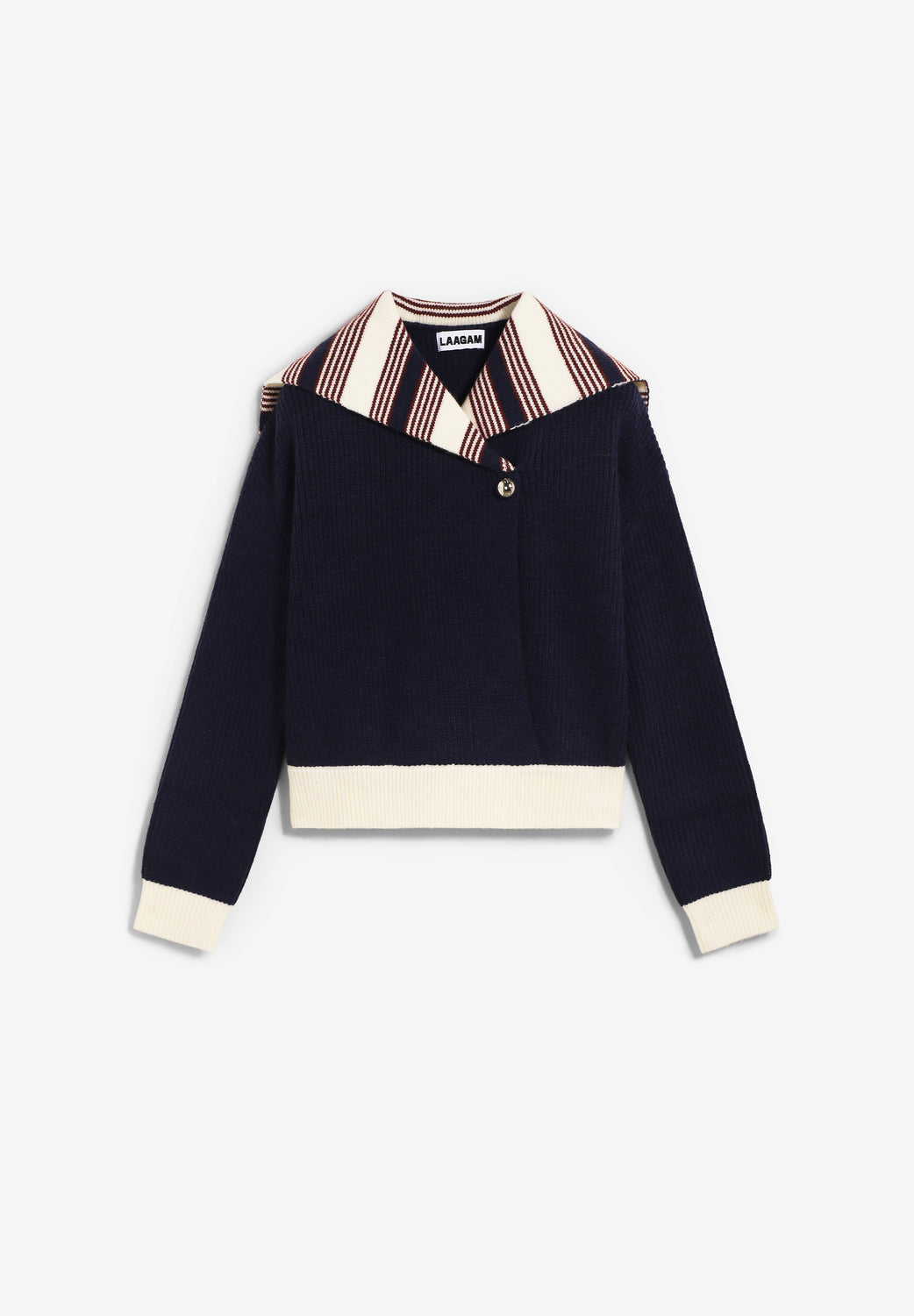 Jersey Laagam confeccionado en mezcla de tejidos: 46% acrílico, 31% poliéster y 23% nailon. Cuenta con ajuste regular, cuello alto marinero, mangas largas, cierre de botones y puños y bajo acanalados.