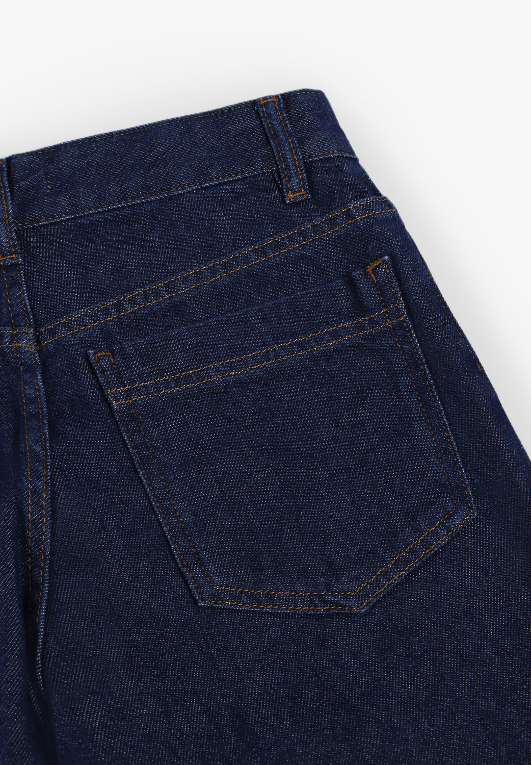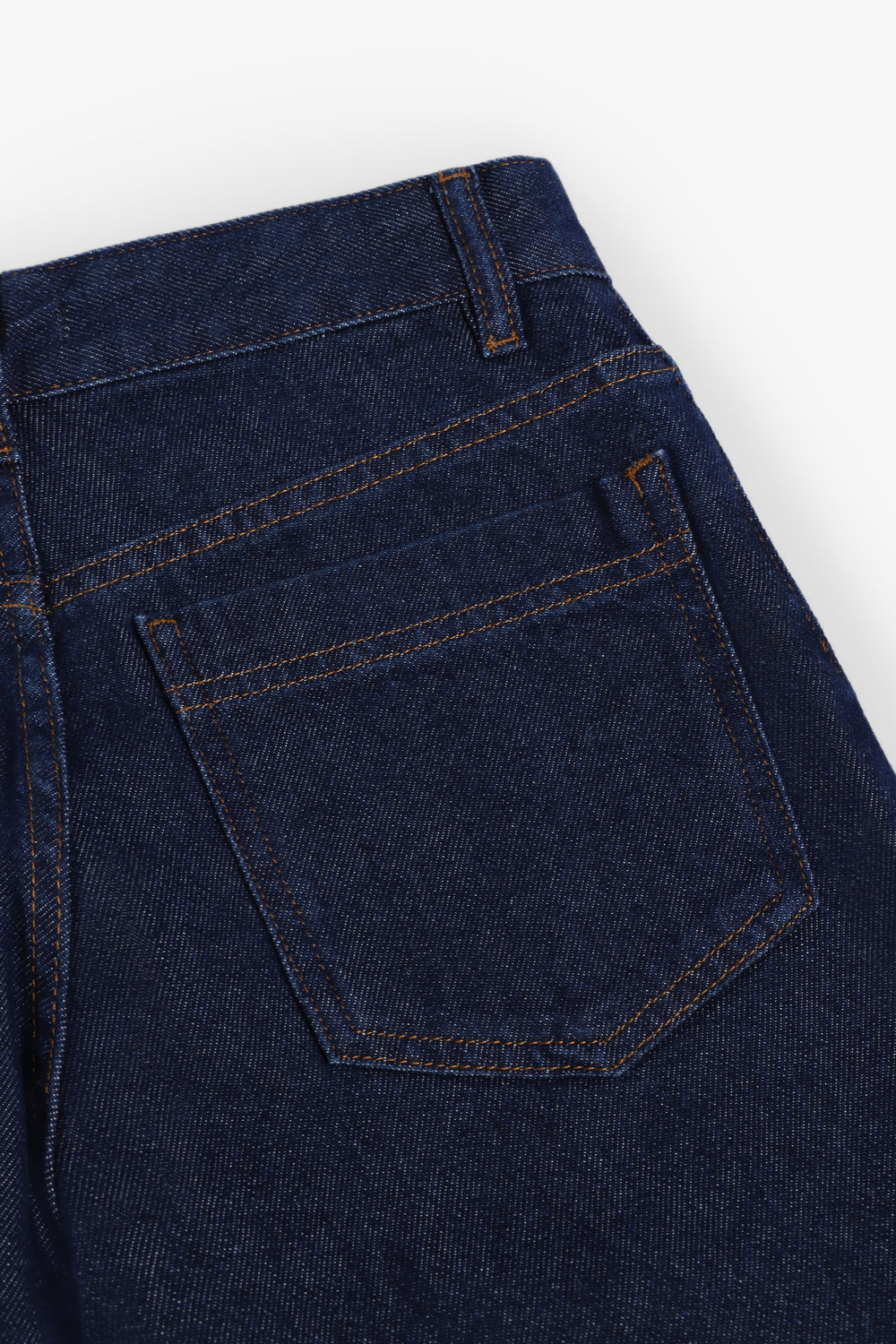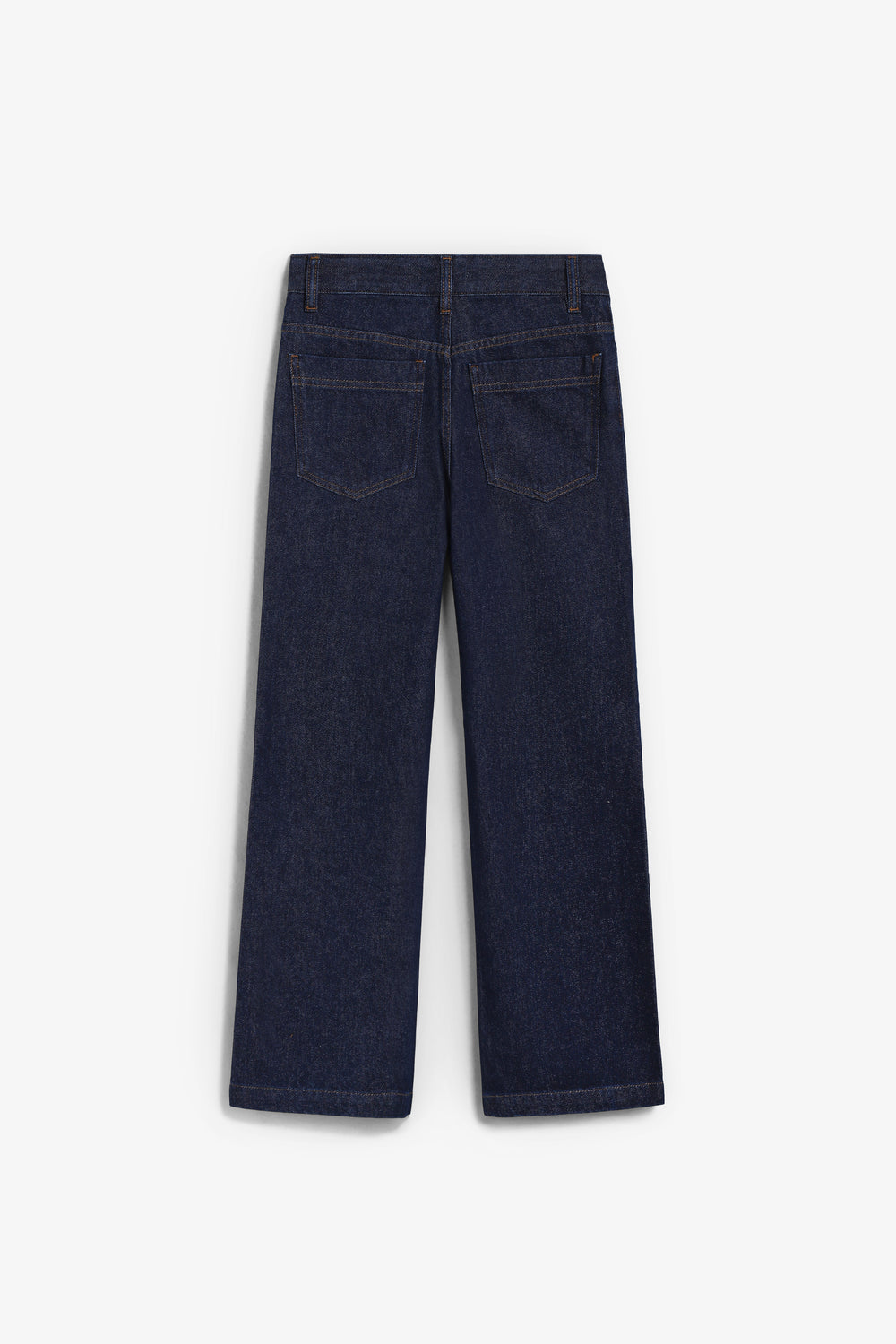 Pantalón vaquero Sessun confeccionado en 100% algodón, de corte recto y talle medio-ato. Cuenta con la pernera ligeramente acampanada, largo tobillero y puntadas a contraste. Cierre de botón en la cintura y cremallera oculta, bolsillos delanteros de relojero y bolsillos traseros de parche.