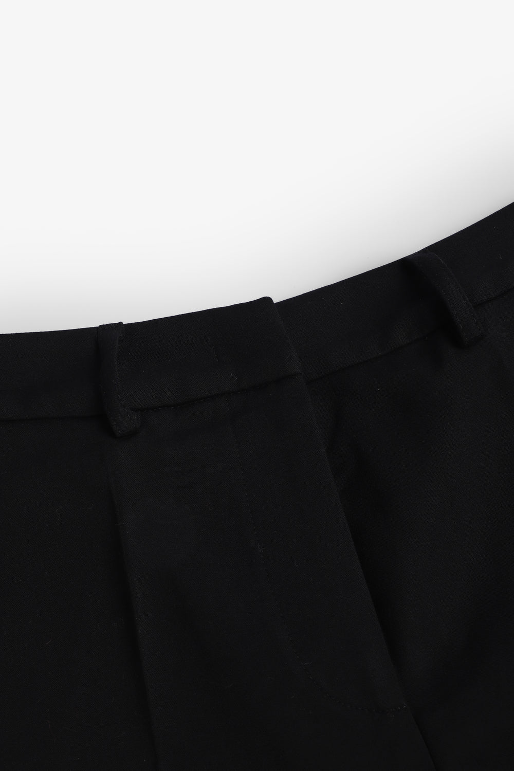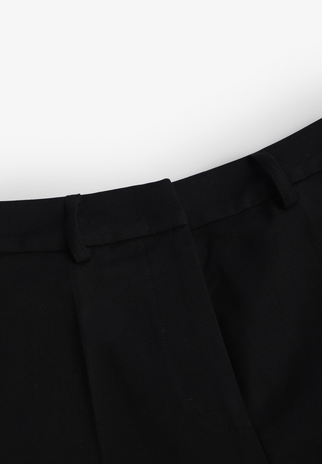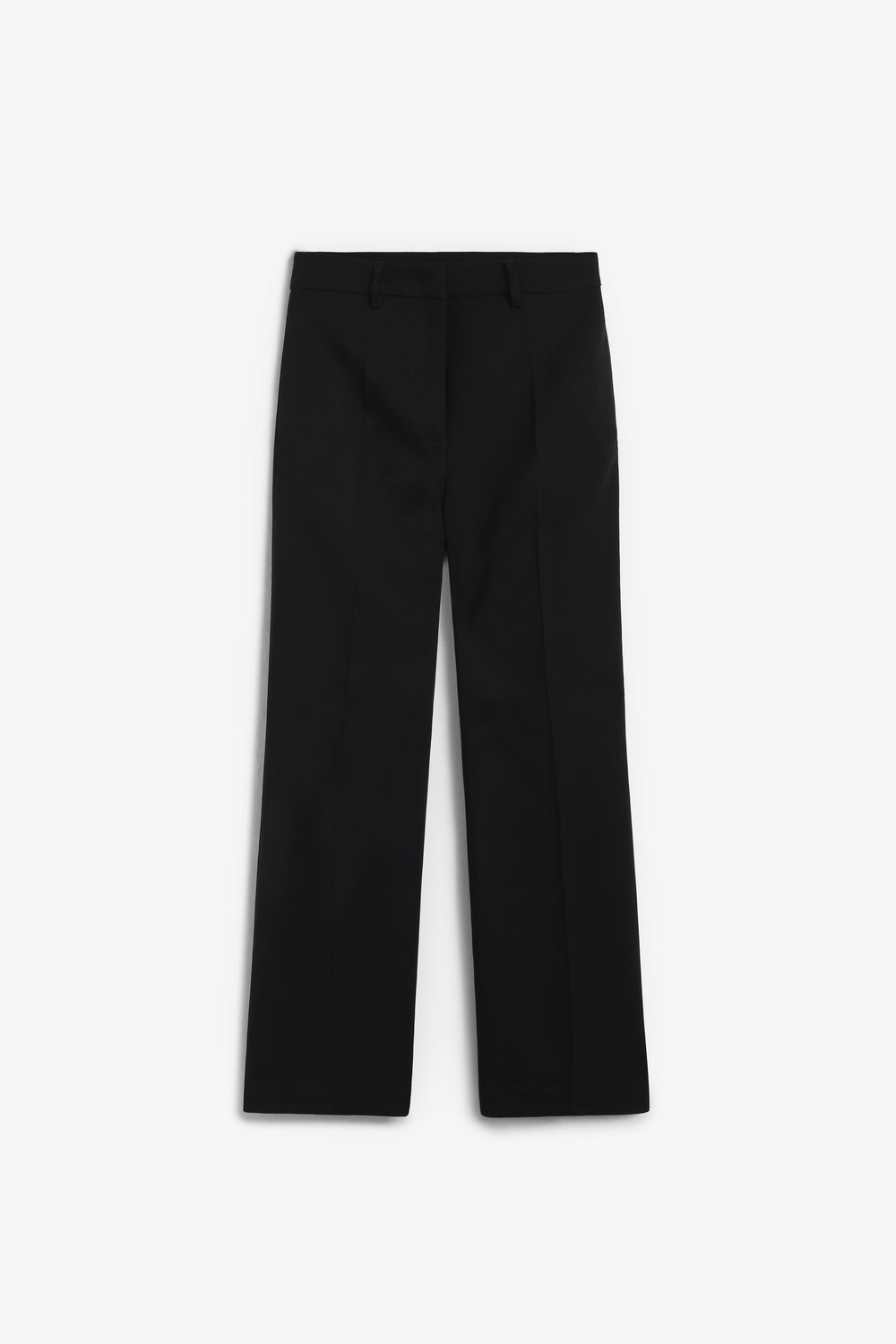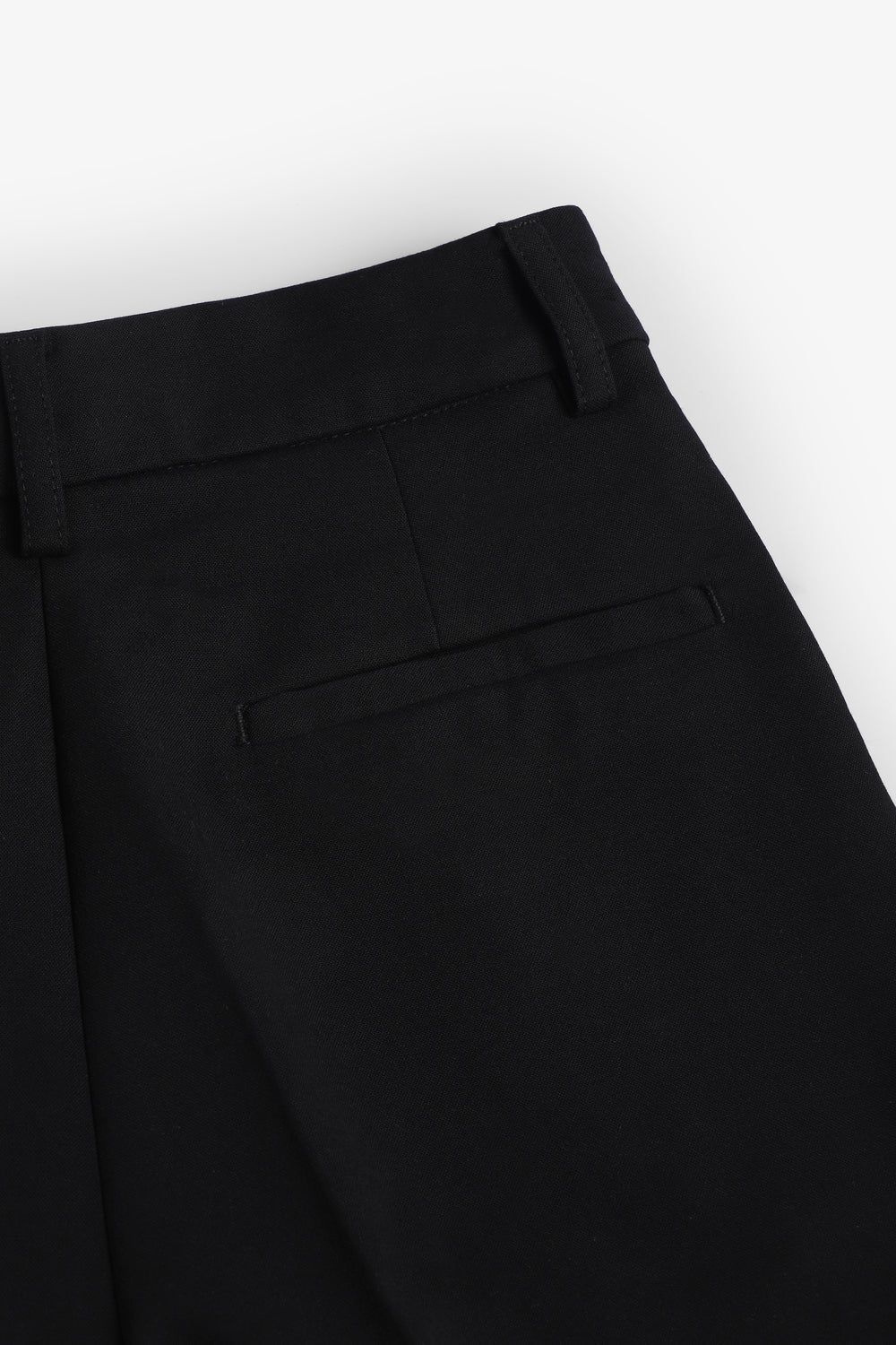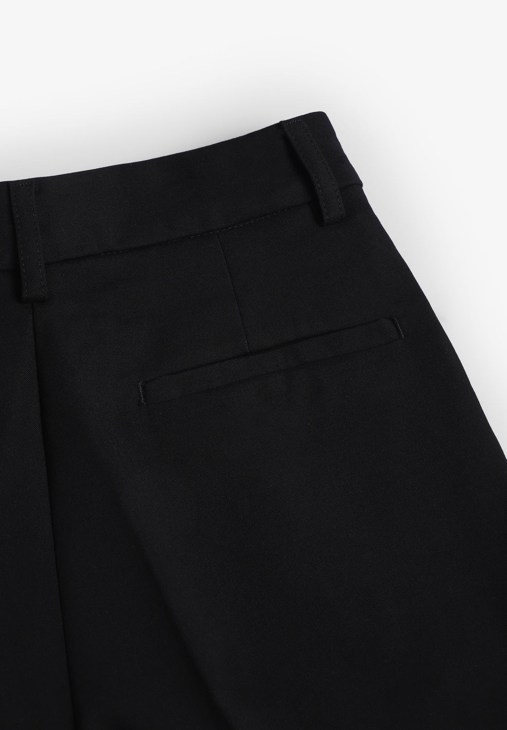 Pantalón Sessun confeccionado en mezcla de materiales (64% poliéster, 34% algodón y 2% elastano), de corte recto, flexible y ligero. Presenta una cintura elástica, cierre de botón, gancho y cremallera oculta y bolsillos en las costuras laterales. Detalle de bolsillos ribeteados en la parte trasera y pliegues a lo largo de la pernera.