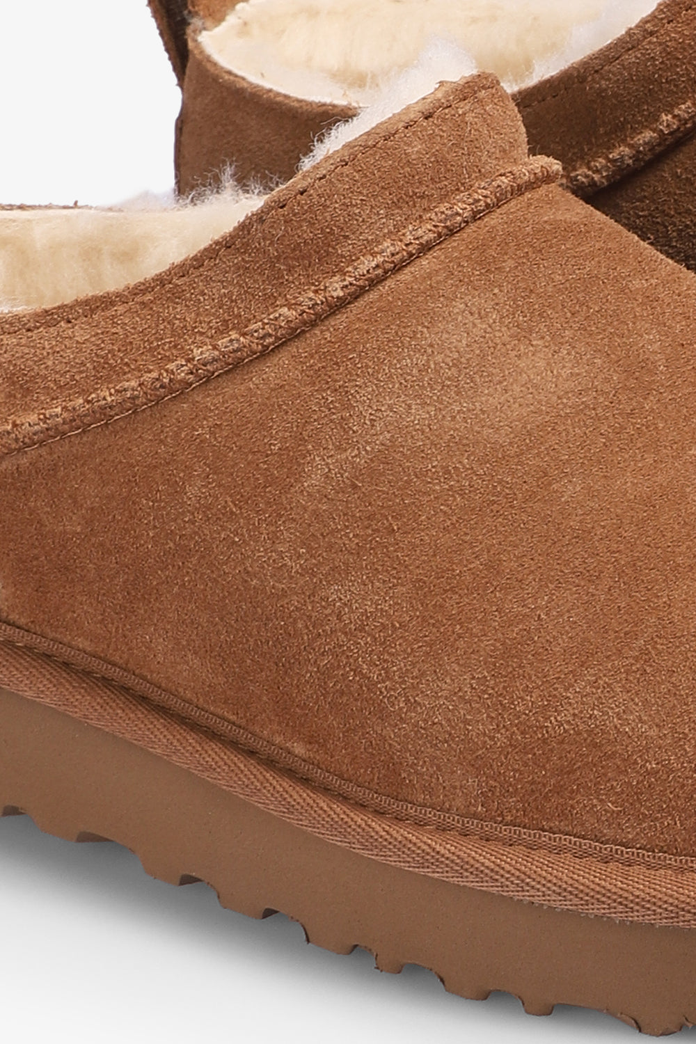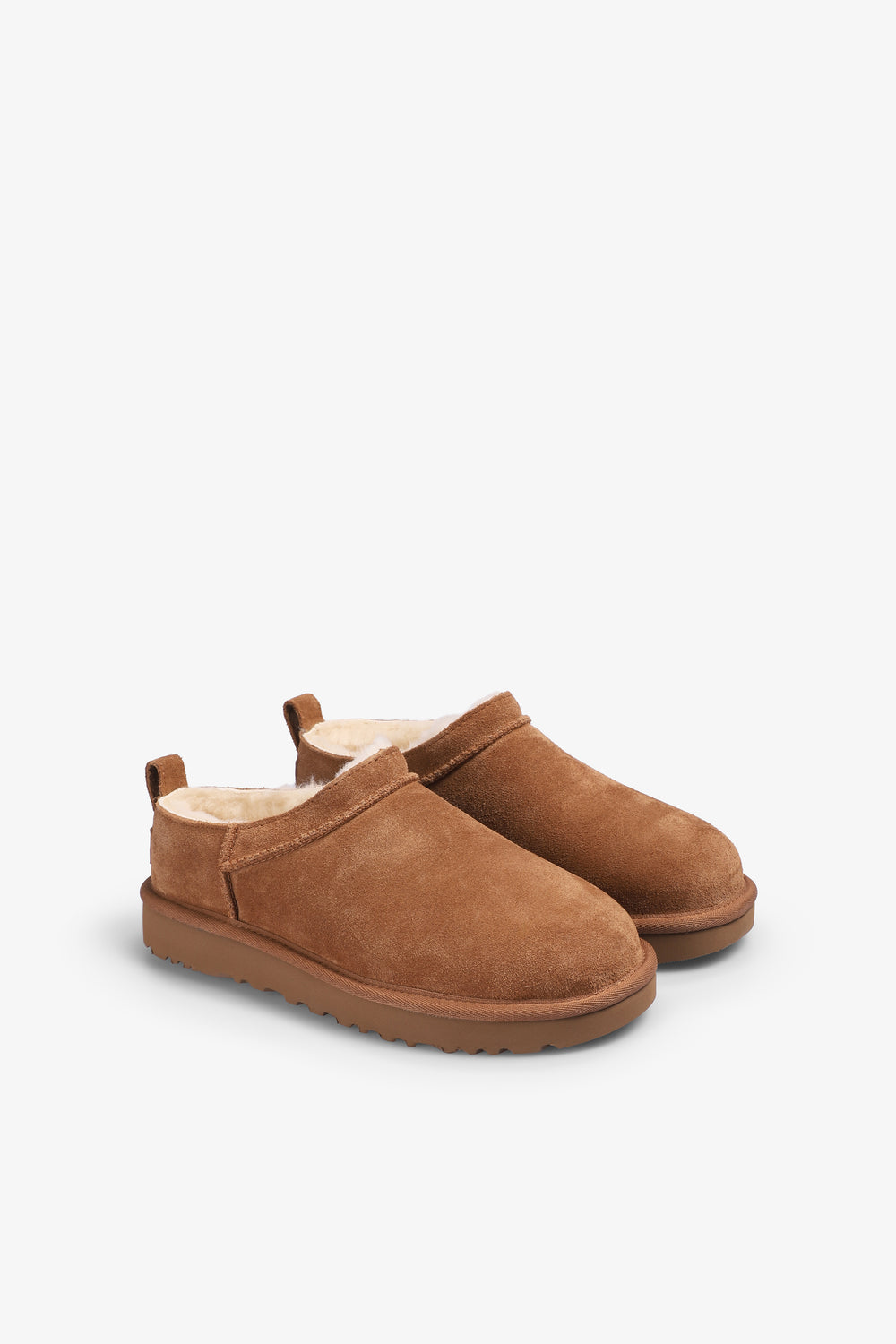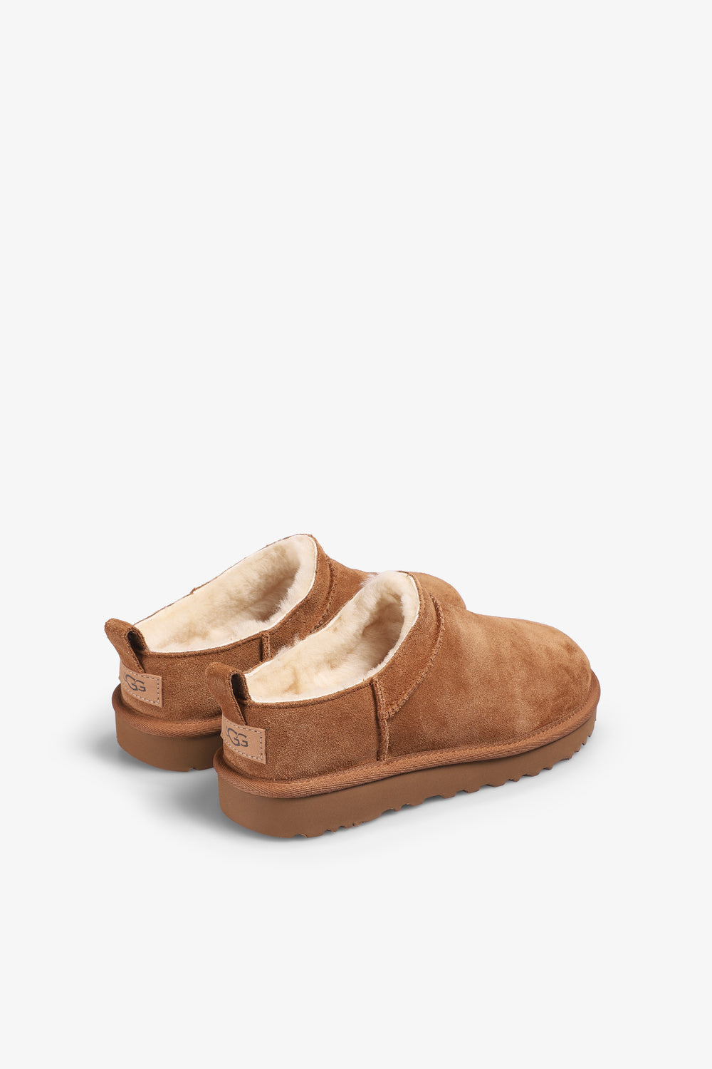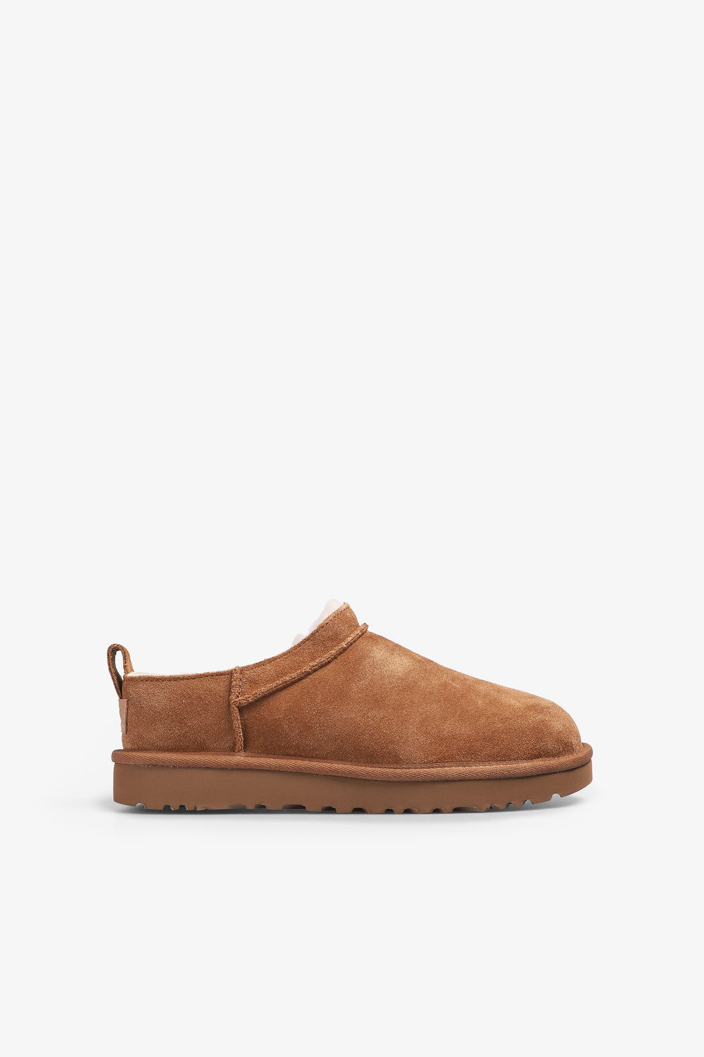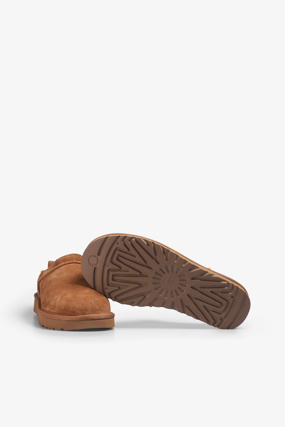 Botas UGG confeccionadas con un empeine de ante auténtico forrado con piel de oveja ultrasuave que regula la temperatura de manera natural. Suele ligera de EVA que aporta sujeción y comodidad. Ribete textil fabricado en poliéster y detalle de etiqueta tejida en la plantilla y etiqueta de piel con logotipo grabado en el talón.