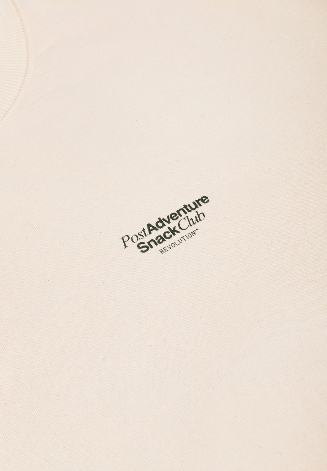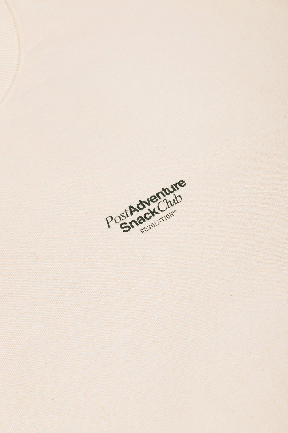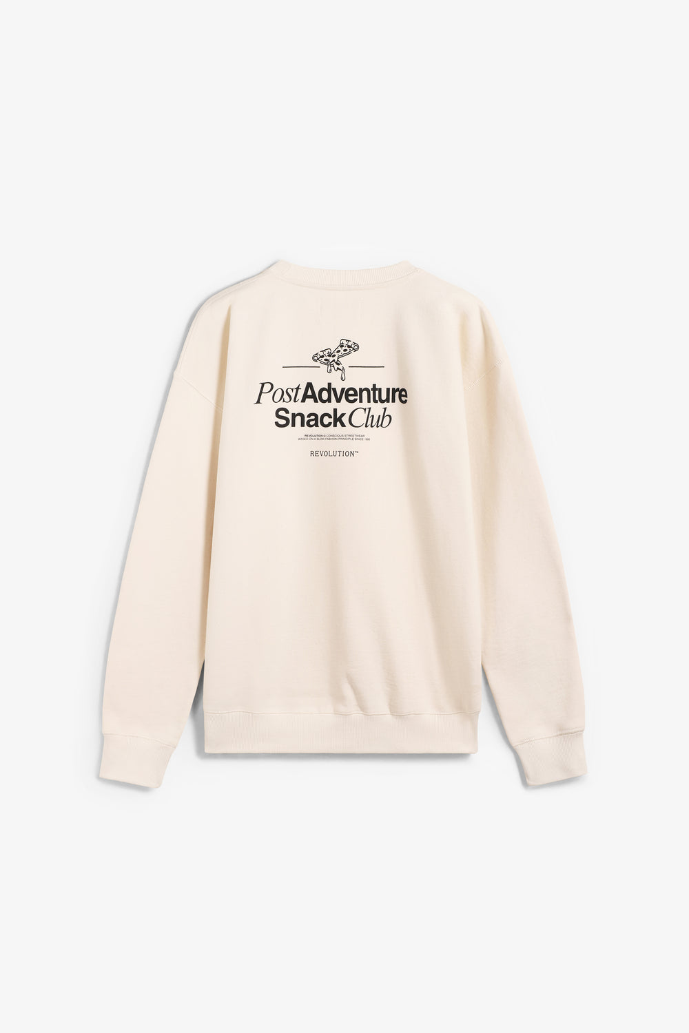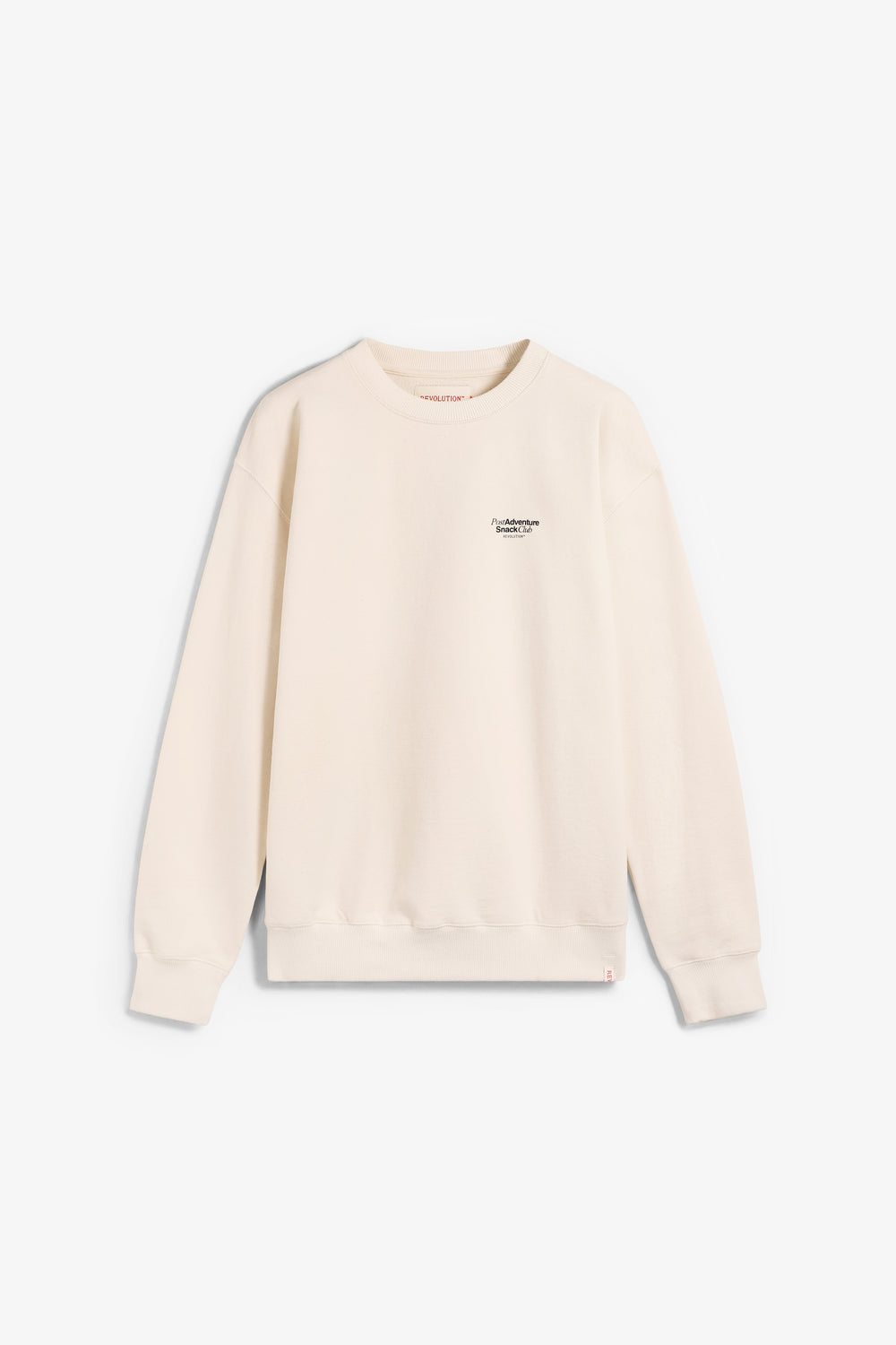 Sudadera Revolution confeccionada en tejido de algodón orgánico y corte holgado. Presenta un cuello redondo, pequeño estampado monocromático en el pecho y un gran estampado en la espalda. Proceso de teñido que aporta un estilo vintage.