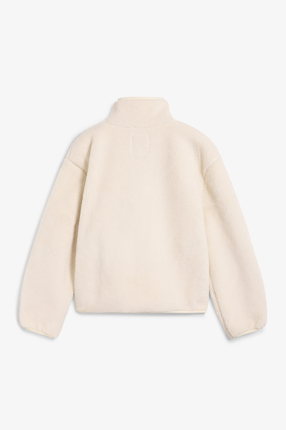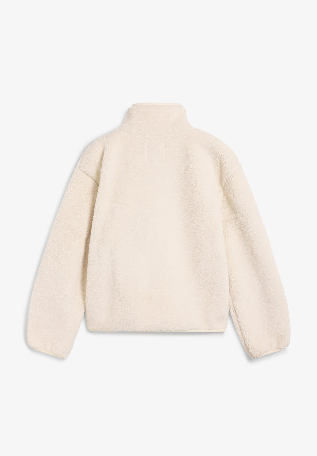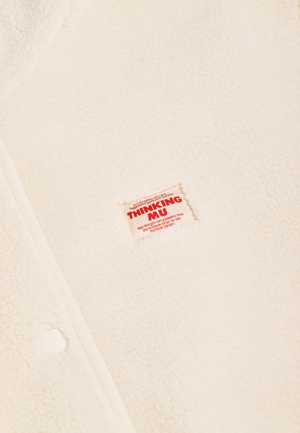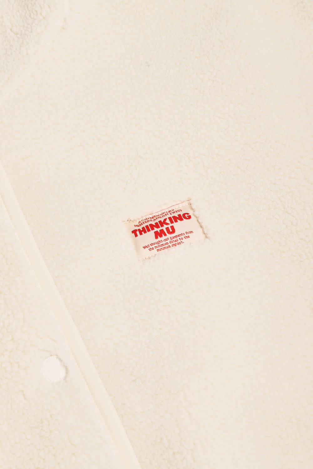 Chaqueta Thinking Mu confeccionada en 100% poliéster reciclado. Presenta cuello alto, mangs lrgas, ajuste relajado y cierre frontal con botones a presión.