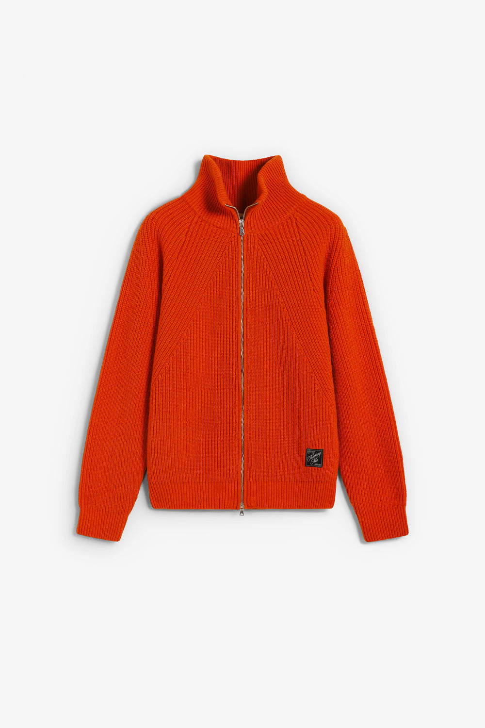 Jeresey Thinking Mu confeccionado en 100% lana. Presenta un cuello alto, mangas raglán largas, corte regular y cierre con cremallera.