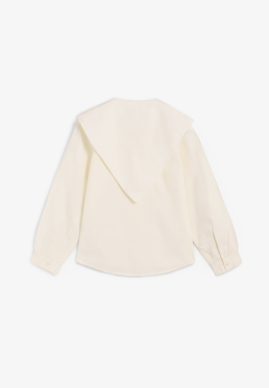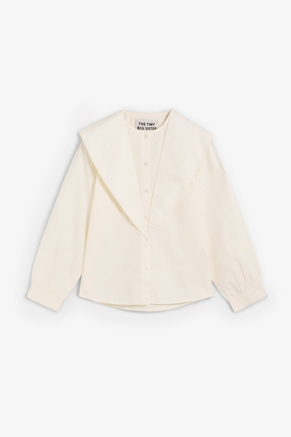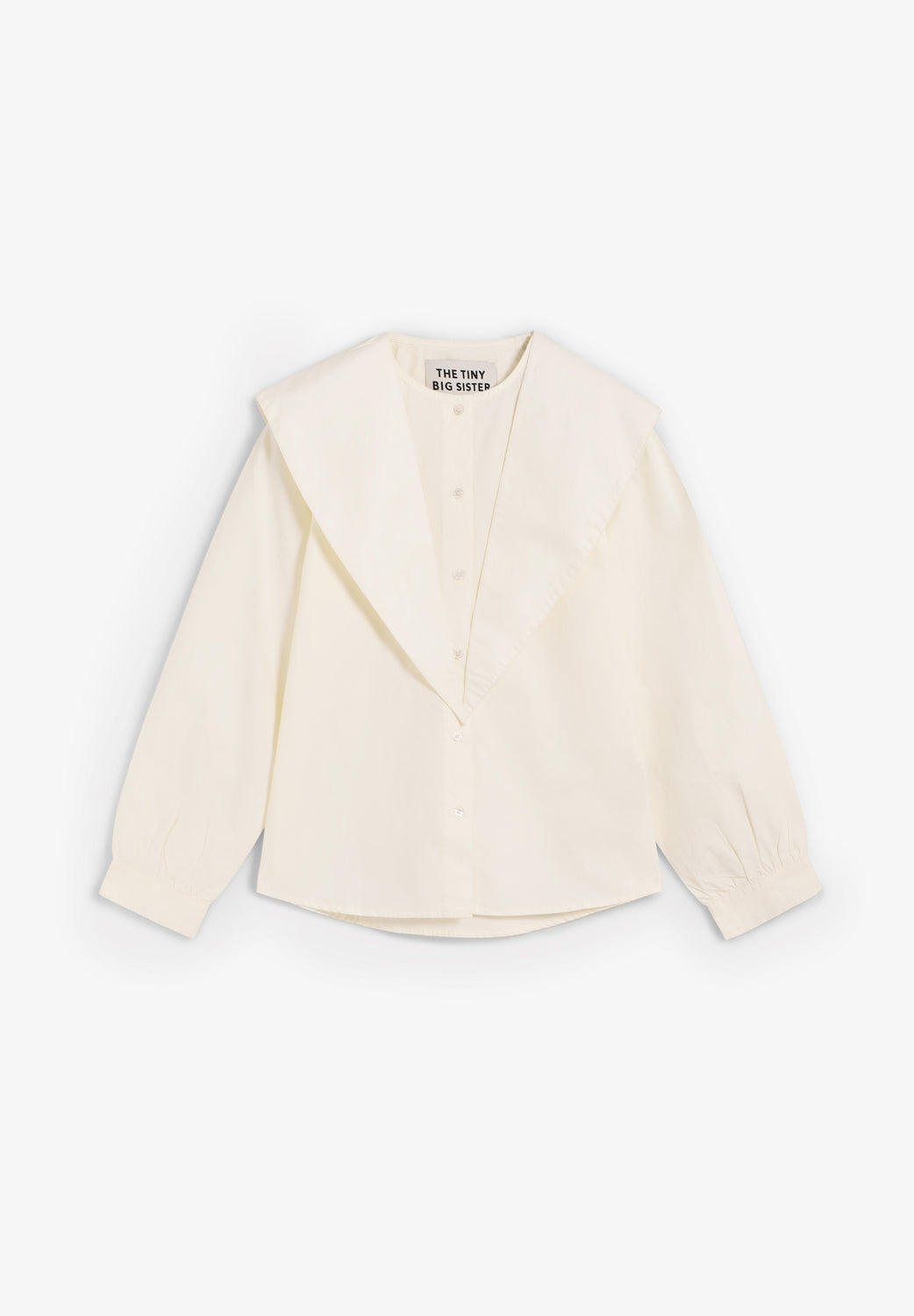 Camisa The Tiny Big Sister confeccionada en popelina de algodón con tacto de papel. Presenta un cuello de bufanda integrado para un estilo versátil y líneas limpias.