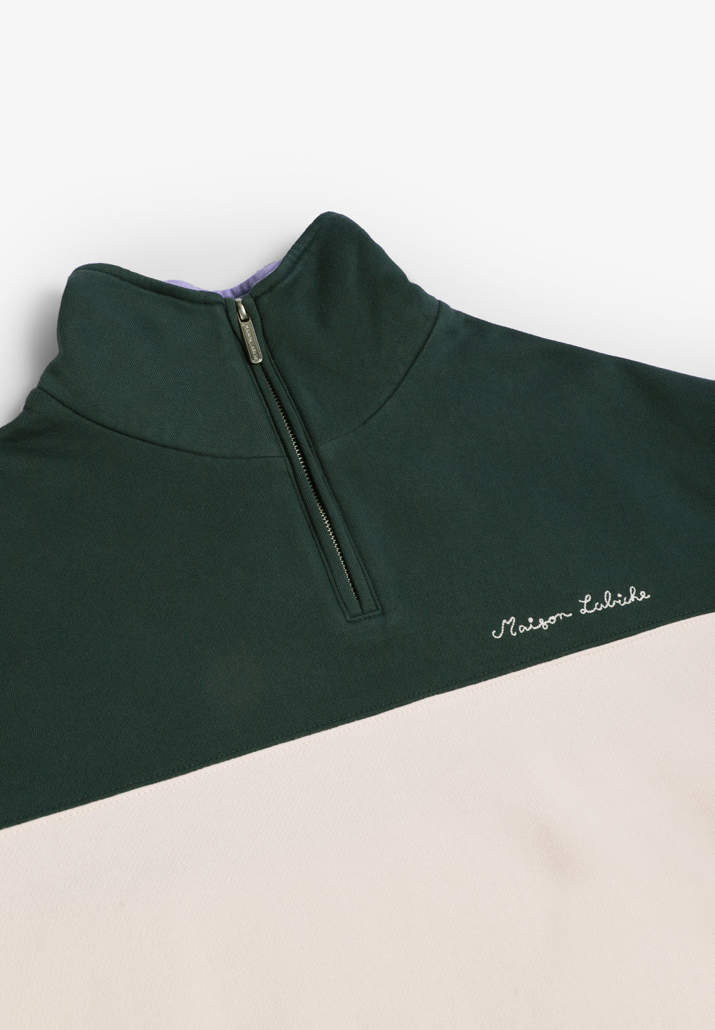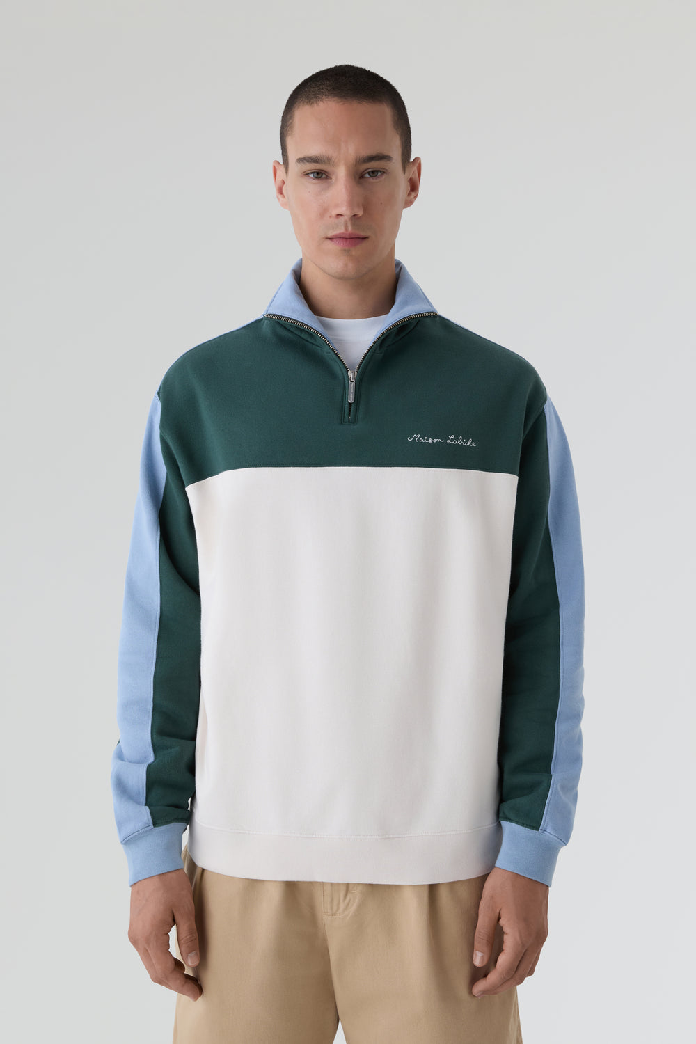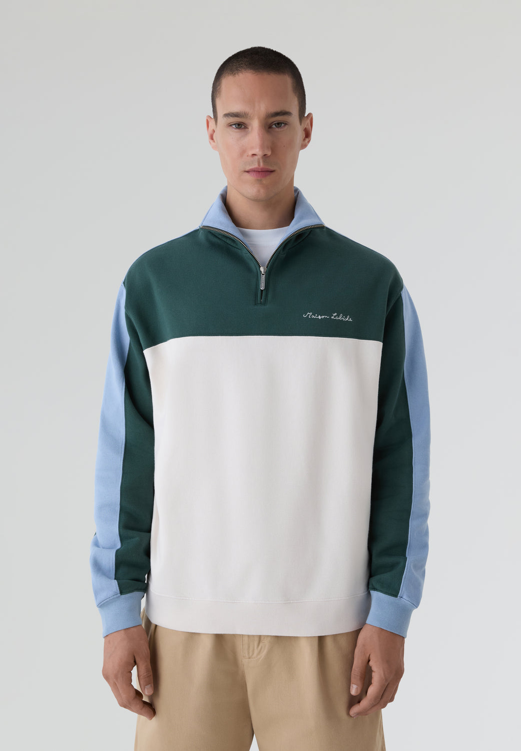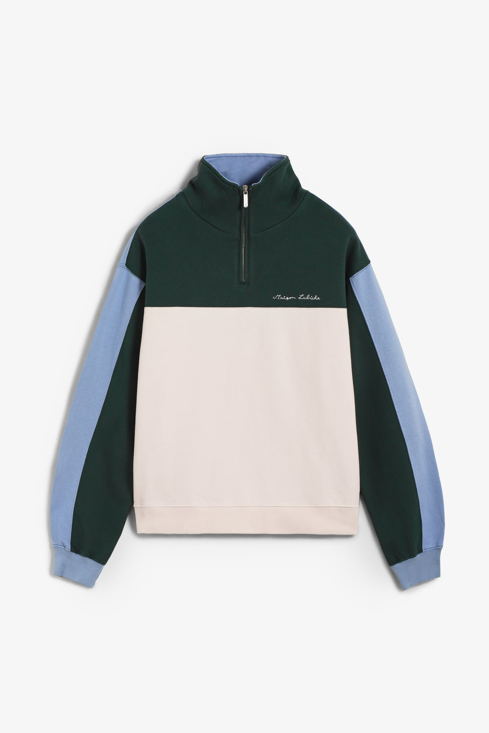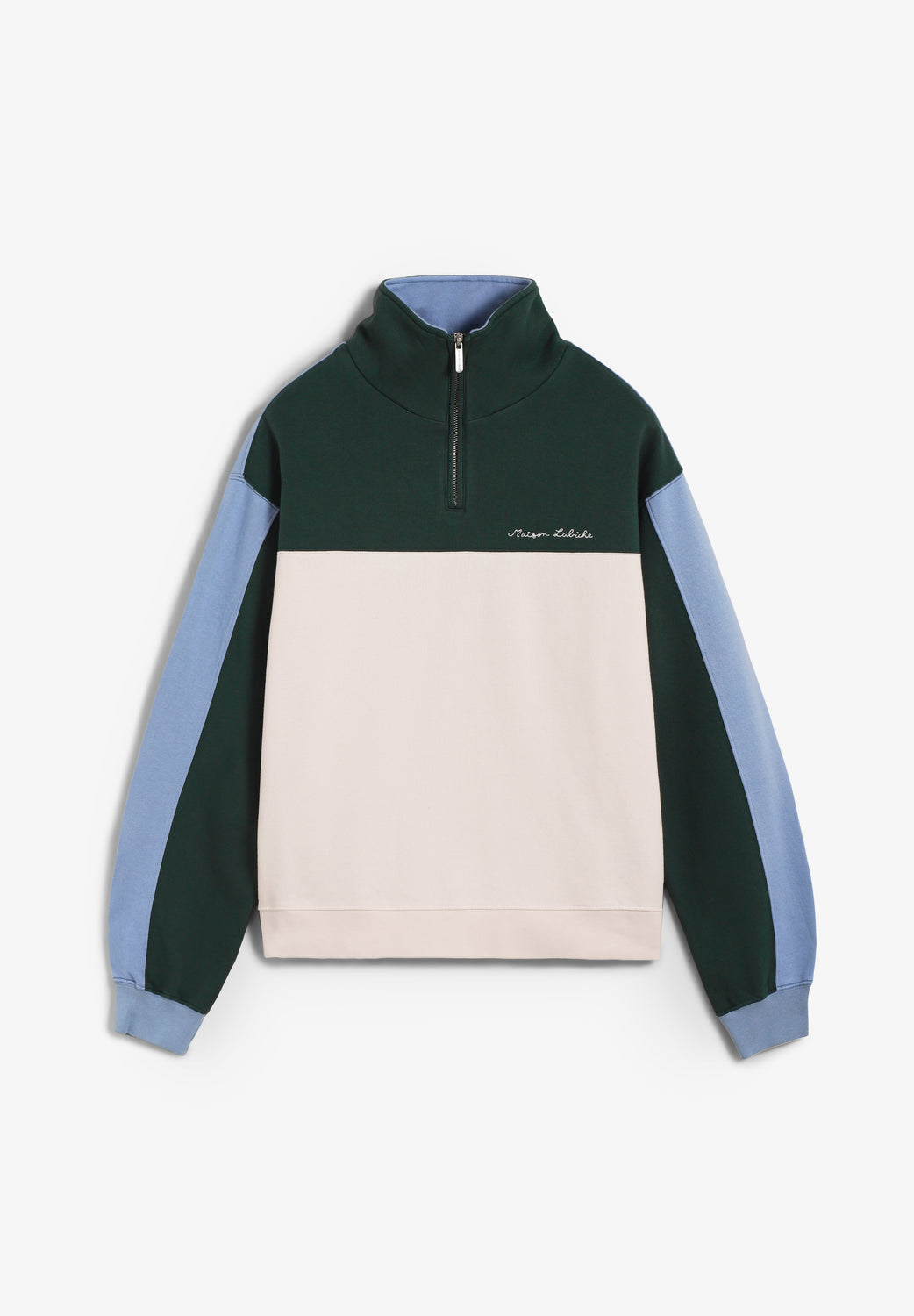 Sudadera Maison Labiche confeccionada en 100% algodón orgánico y corte holgado. Cuenta con cuello alto con cremallera, mangas y bajo acanalados y está confeccionada en suave forro polar. Detalle del nombre de la marca bordado en el pecho.
