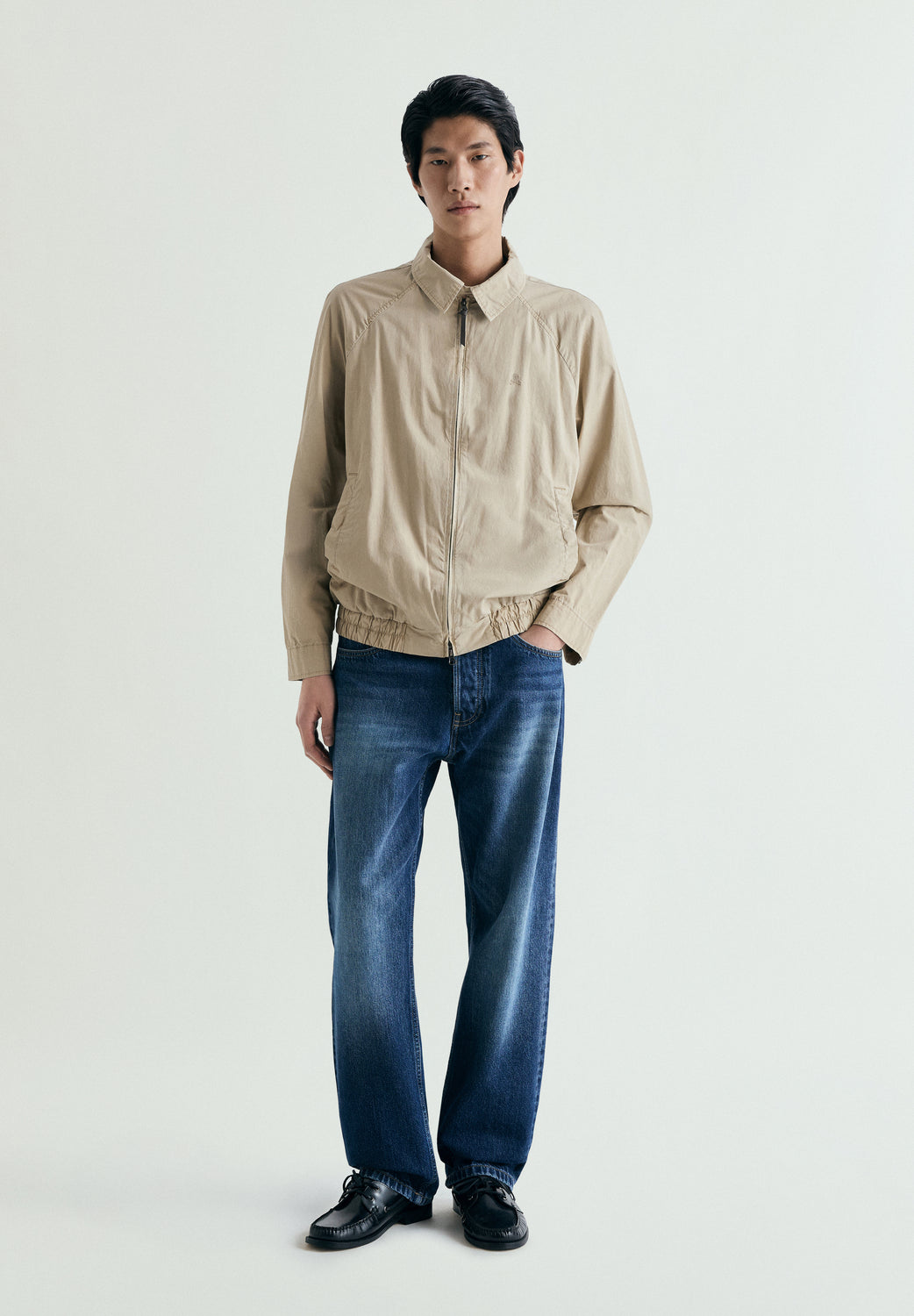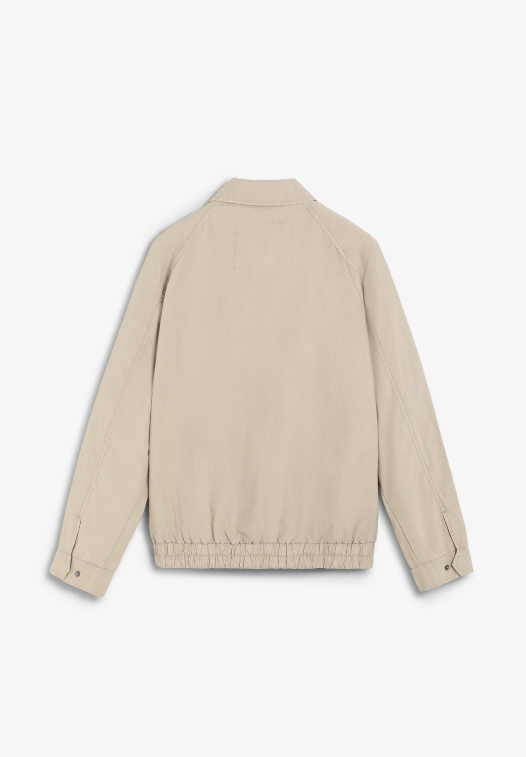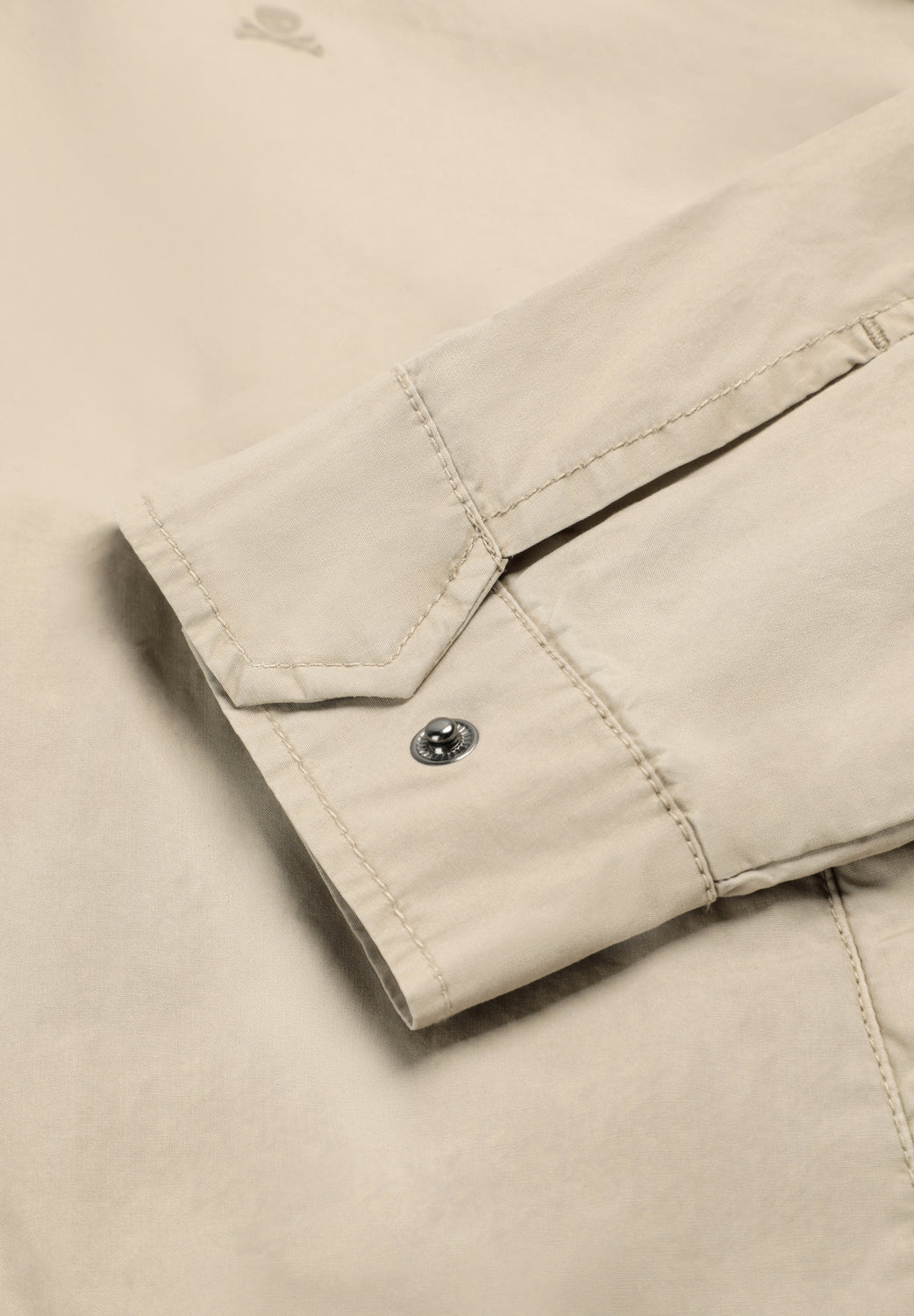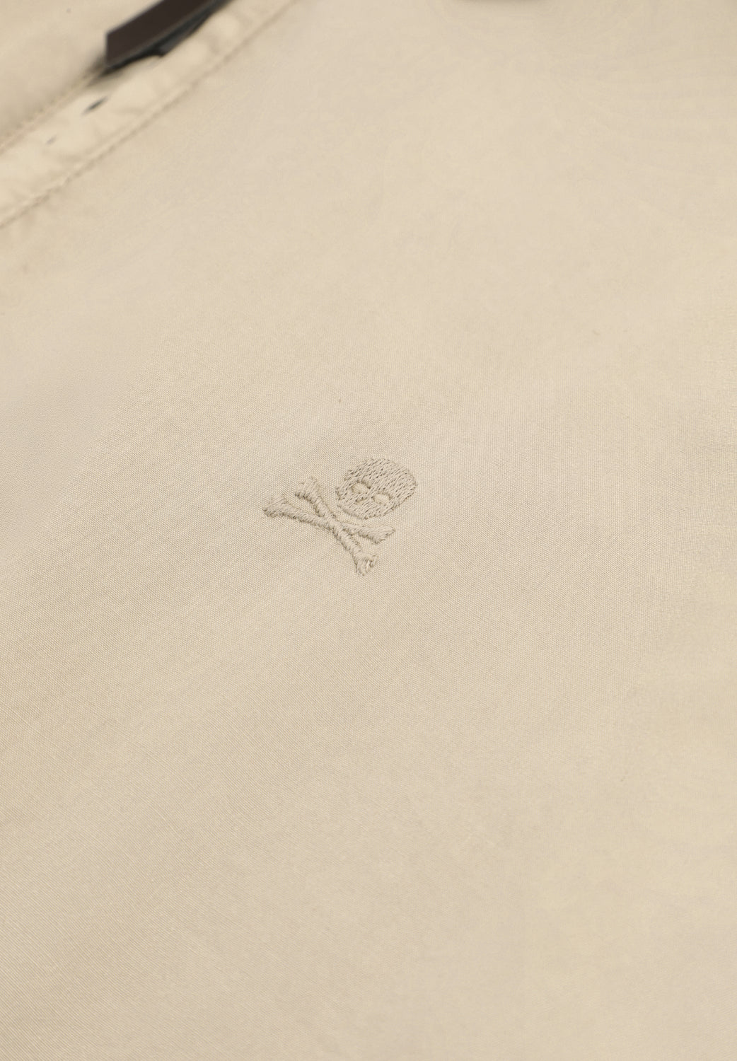 Chaqueta estilo bomber confeccionada en 100% algodón BCI. Dos bolsillos laterales con ribete. Cuello con correa cruzada y cierre por botón. Cierre mediante cremallera doble. Calavera bordada a tono en pecho.