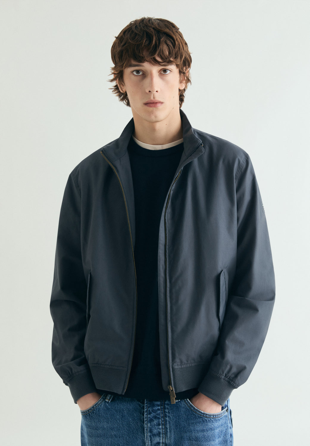 Chaqueta estilo bomber confeccionada en mezcla de algodón. Cierre frontal por doble cremallera. Bolsillos inclinados en frontal con tapeta y cierre por botón. Bolsillo interior. Acabados acanalados. Logotipo en manga izquierda a tono. Detalle de etiqueta en costura lateral izquierda.