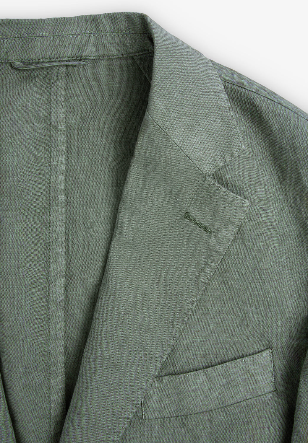 Americana confeccionada en tejido principal lino de la casa Tes. di Sondrio. Regular fit. Cuello con solapa de muesca y ojal. Manga larga con puño abotonado. Cierre mediante dos botones. Dos bolsillos de parche. Bolsillo interior. Dos aberturas en la parte posterior. Forro interior.