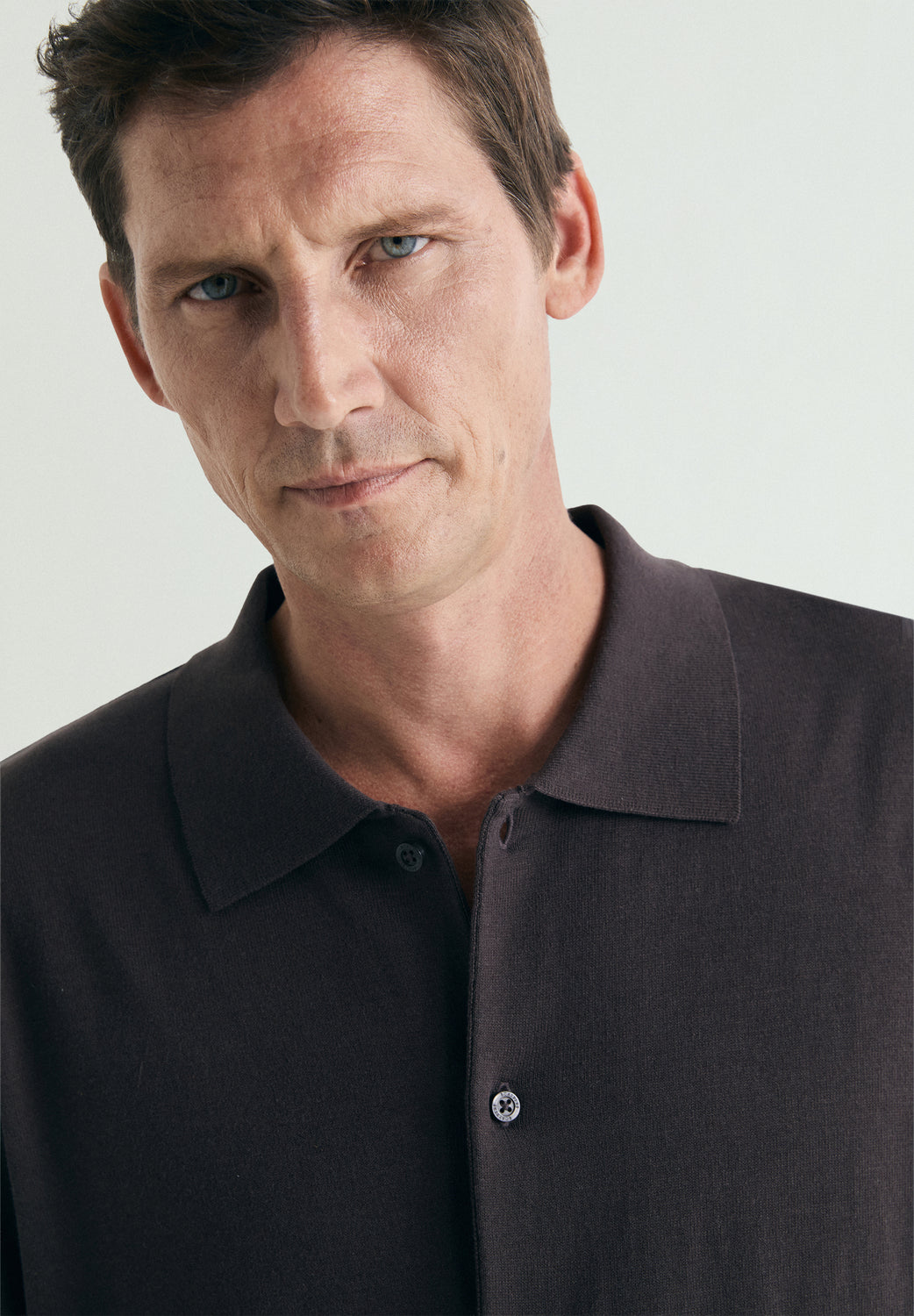 Polo tricot confeccionado en mezcla de algodón y seda. Cuello de polo y manga corta. Cierre frontal con botones.