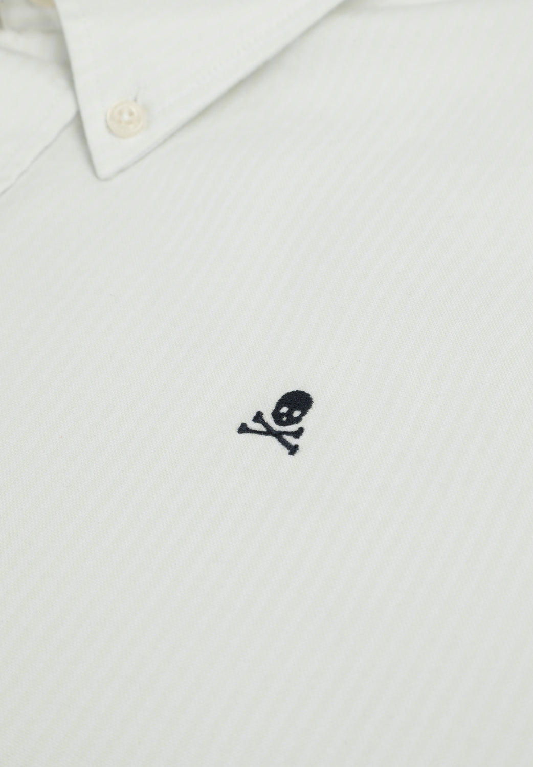 Camisa Oxford confeccionada en 100% algodón BCI. Cierre con botones. Estampado a rayas. Manga larga. Puños abotonados. Detalle de calavera bordada a contraste en pecho.