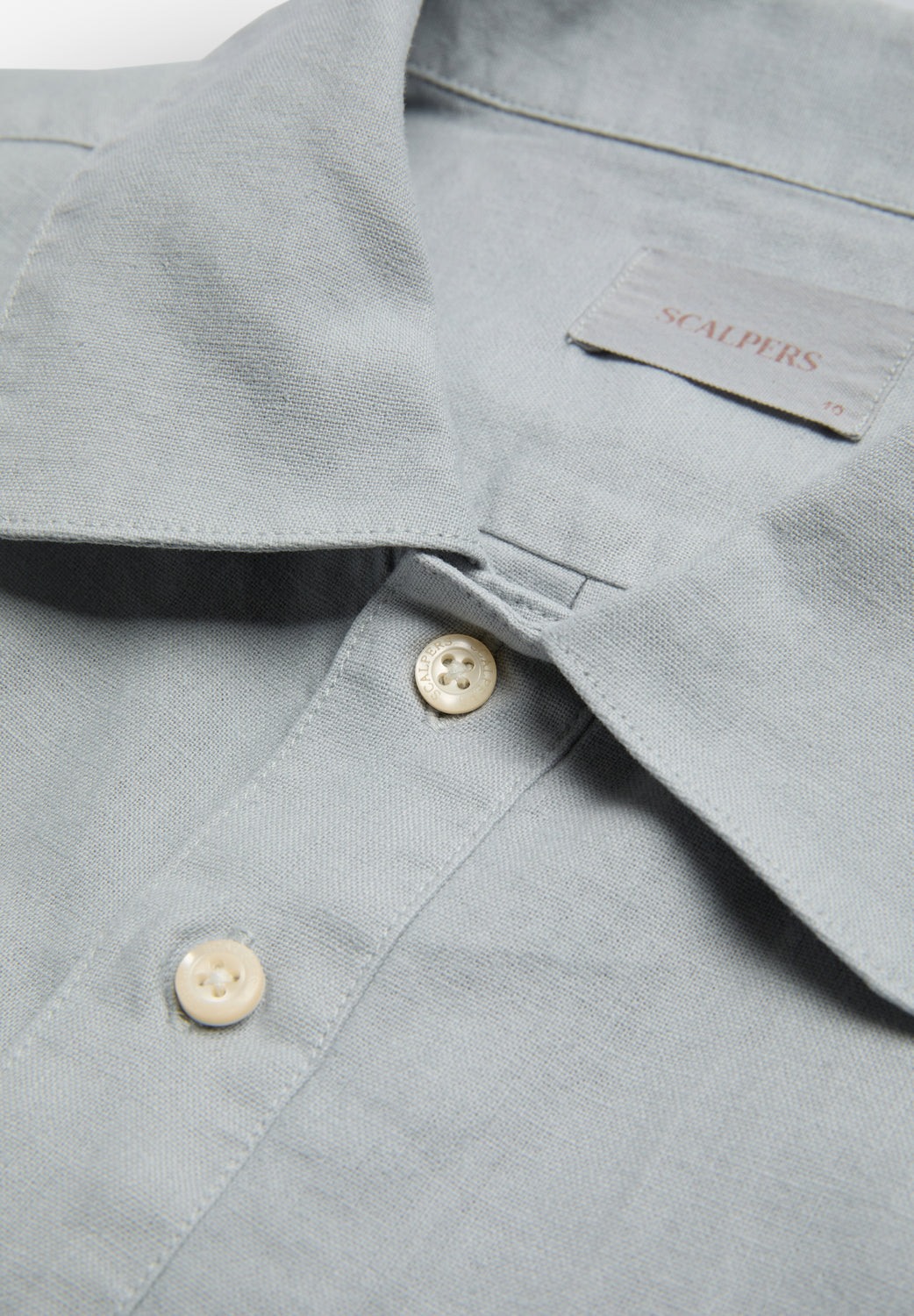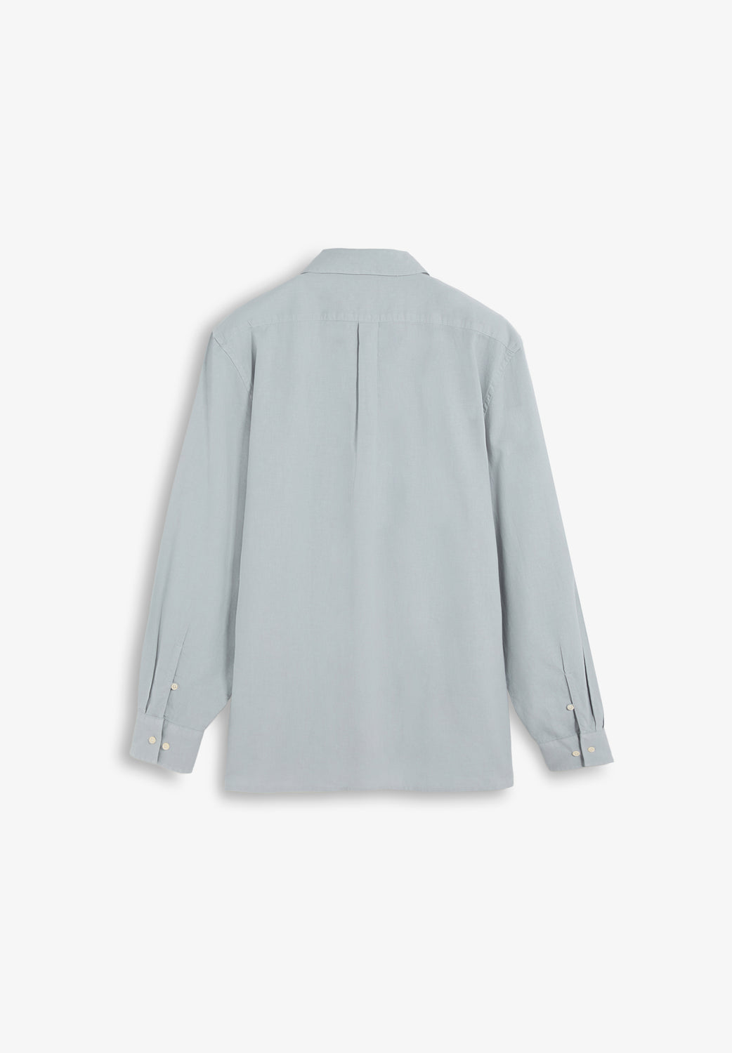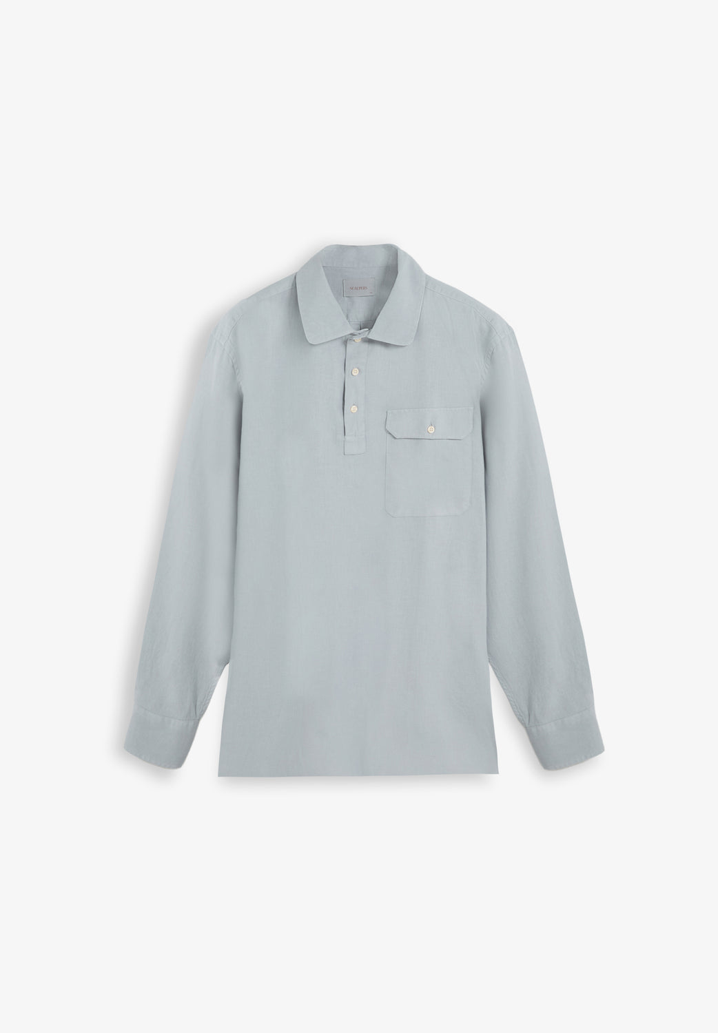 Camisa tipo polera confeccionada en mezcla de lino y algodón. Regular fit. Cuello de polera y mangas largas con puños abotonados. Detalle bolsillo frontal con tapeta y botón.