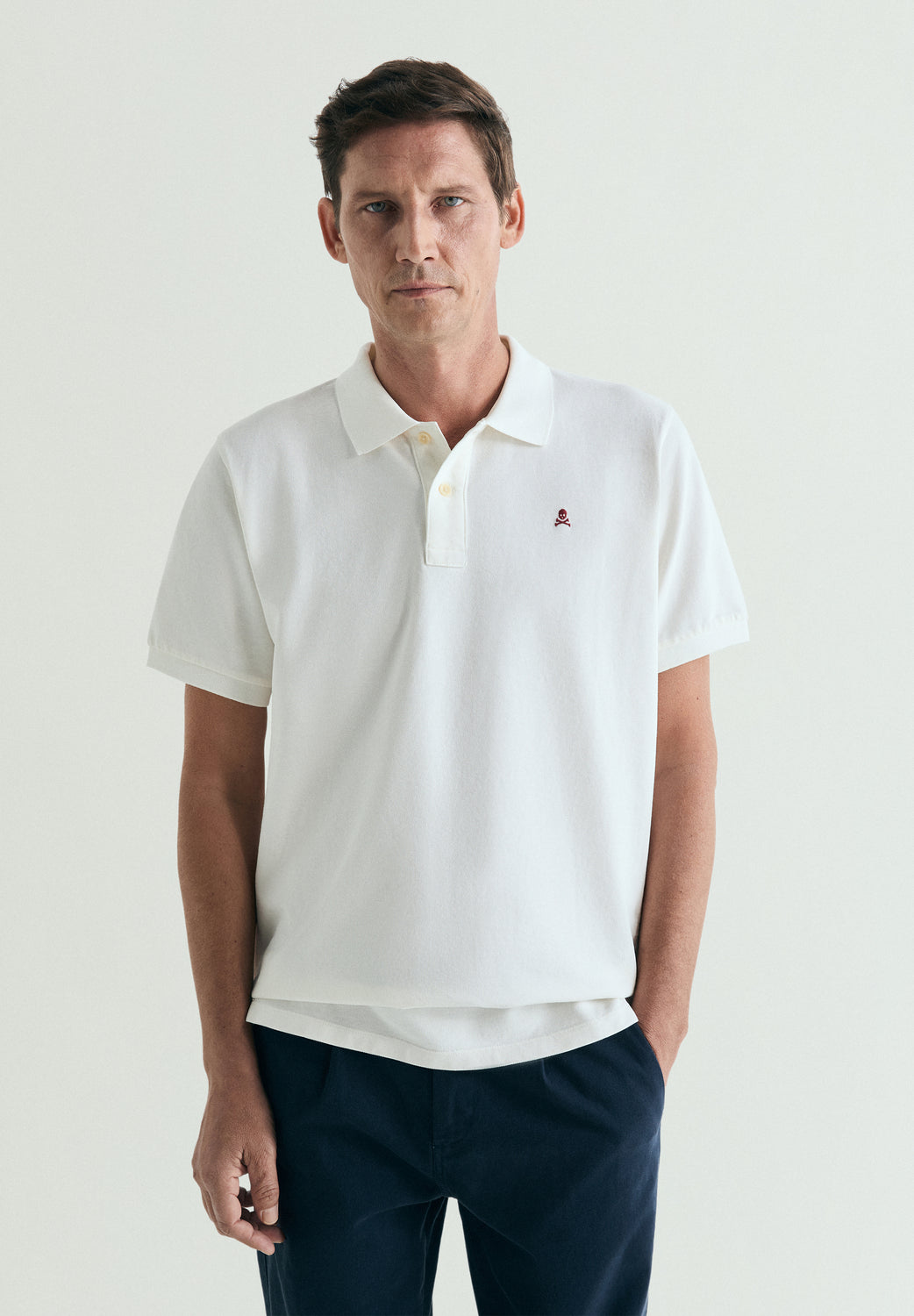Polo de piqué confeccionado en 100% algodón . Manga corta. Regular fit. Tapeta de dos botones. Calavera bordada a tono en pecho. Cuello y puños acanalados.