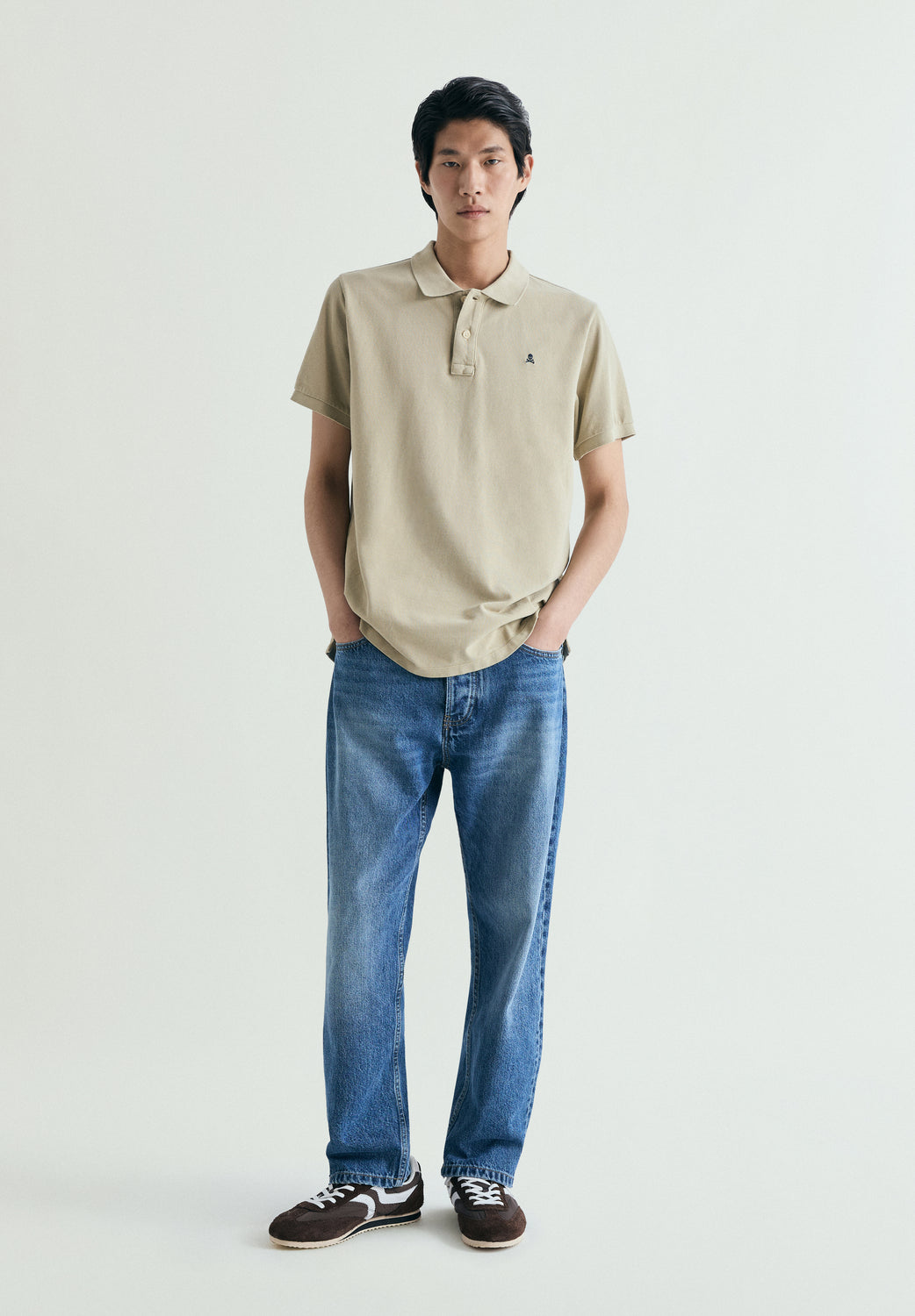 Polo de piqué confeccionado en 100% algodón . Manga corta. Regular fit. Tapeta de dos botones. Calavera bordada a tono en pecho. Cuello y puños acanalados.