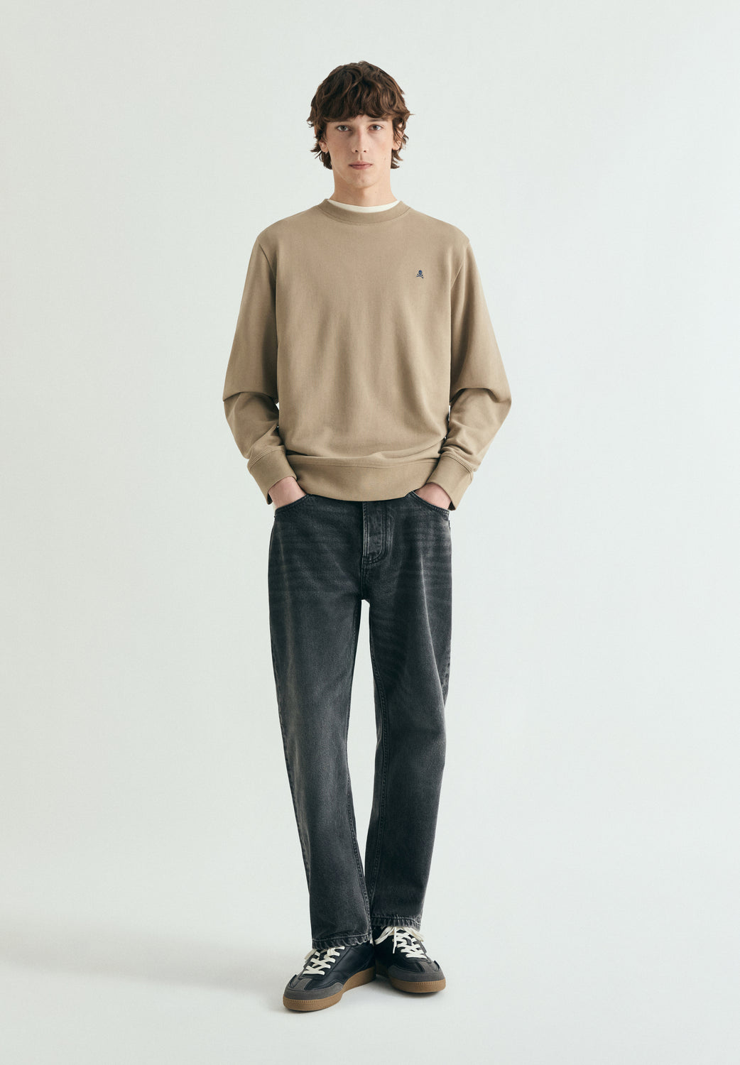 Sudadera confeccionada en 100% algodón BCI. Cuello redondo. Regular fit. Efecto lavado. Calavera bordada a contraste en pecho. Cuello, puños y bajo acanalados.