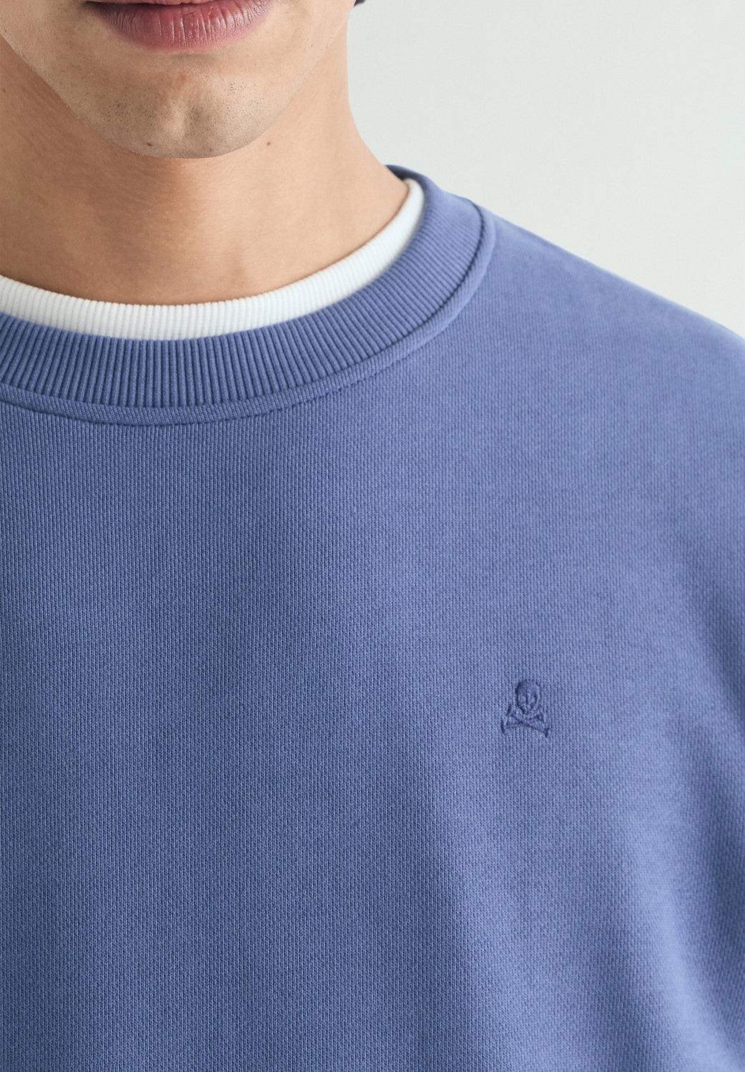 Sudadera confeccionada en 100% algodón . Efecto lavado. Cuello redondo. Logotipo bordado a tono en pecho. Acabados en canalé.