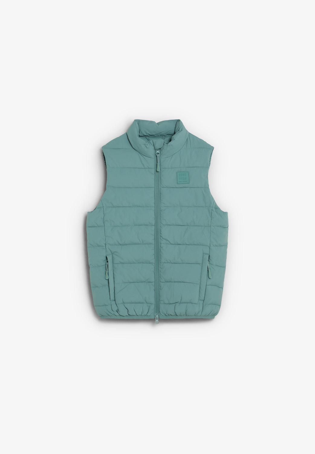 Chaleco acolchado de diseño ligero, con cuello alto y cierre frontal de cremallera. Un básico funcional con bolsillos laterales y detalle de logo en el pecho.