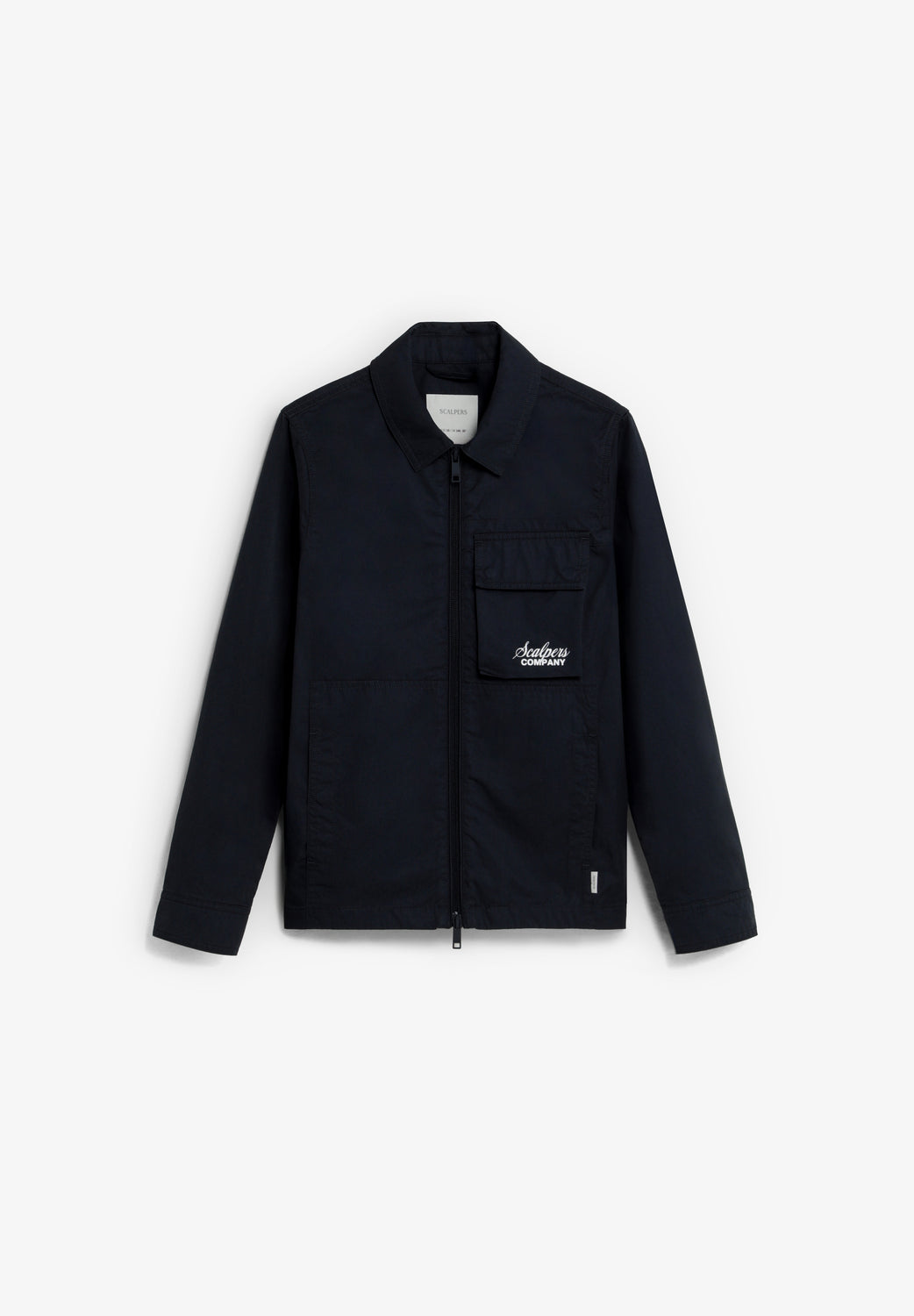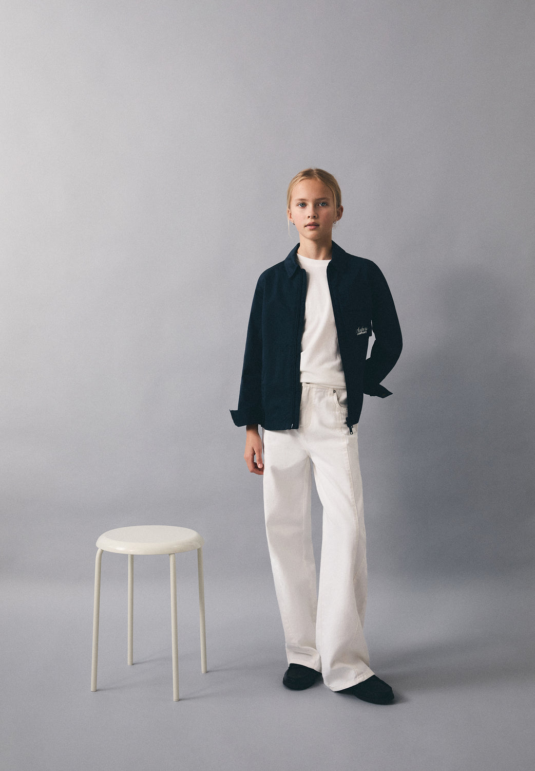 Chaqueta confeccionada en mezcla de algodón. Cuello camisero. Bolsillo en pecho con logo y dos bolsillos frontales. Manga larga. Cierre frontal mediante cremallera de doble carro.