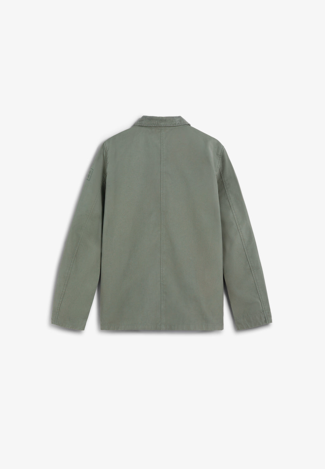 Chaqueta confeccionada en algodón . Regular Fit. Cuello camisero en pana. Manga larga. Cierre delantero con botones. Bolsillos tipo parche con botón.