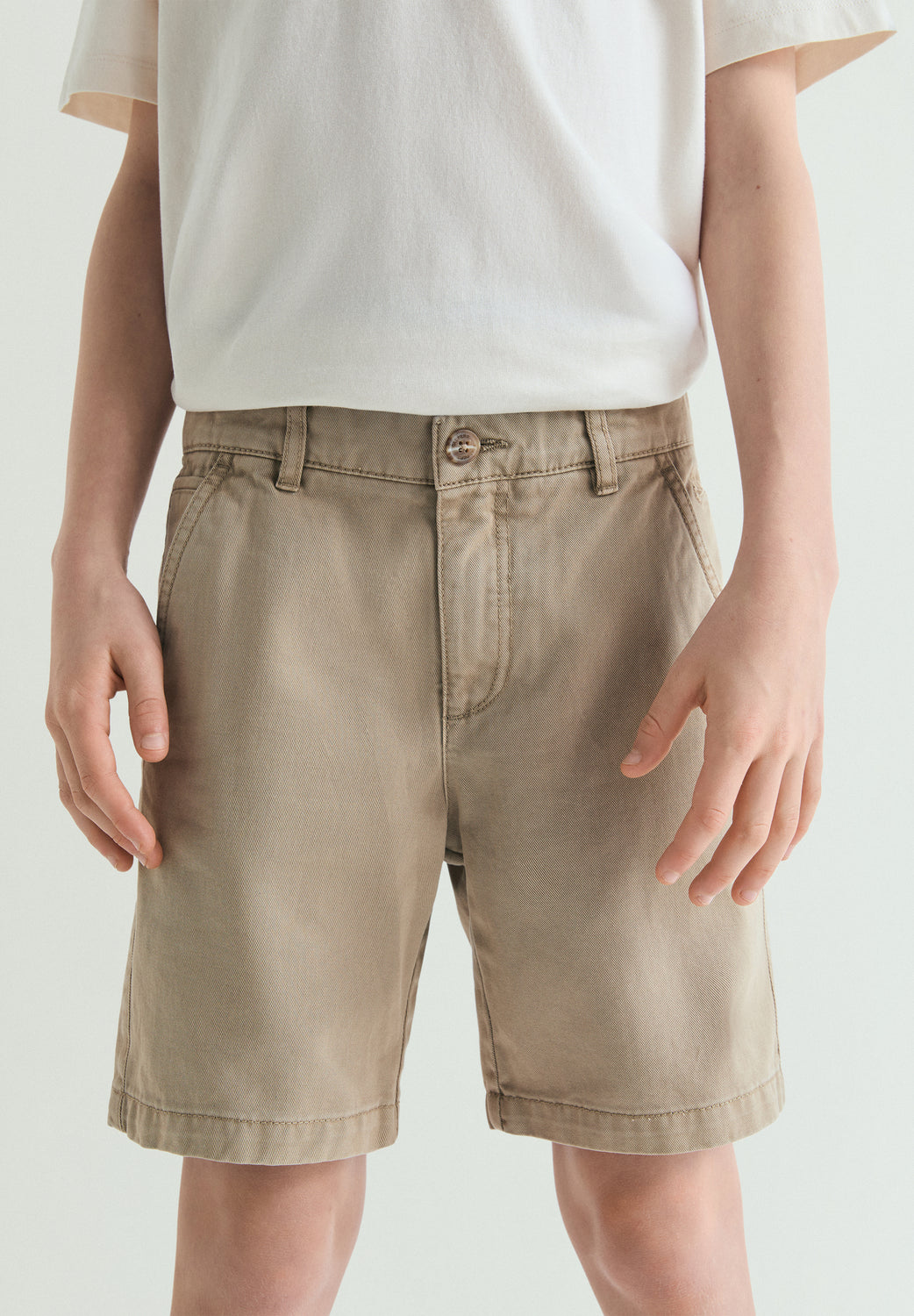 Bermudas confeccionadas en 100% algodón orgánico. Regular Fit. Trabillas en la cintura y bolsillos inclinados. Cierre con cremallera y botón. Calavera bordada a tono en bolsillo.