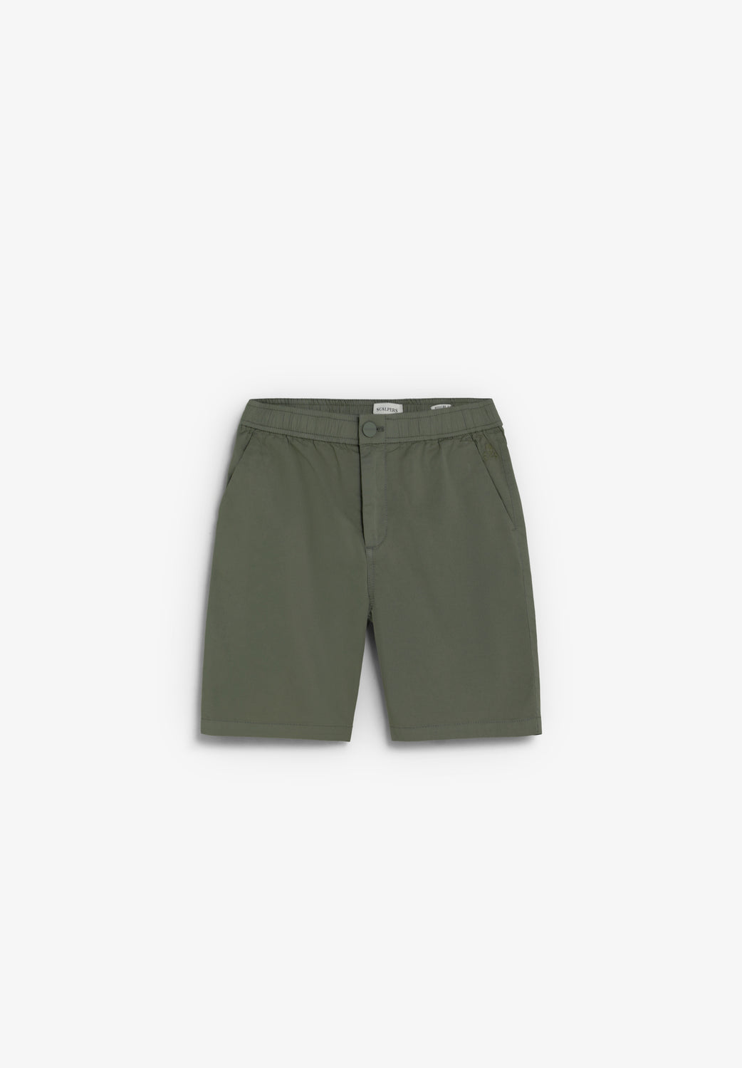 Bermudas confeccionadas en algodón ligeramente elástico. Regular fit. Cinturilla elástica y cierre con cremallera y botón. Bolsillos laterales y bolsillo trasero tipo parche con logo.