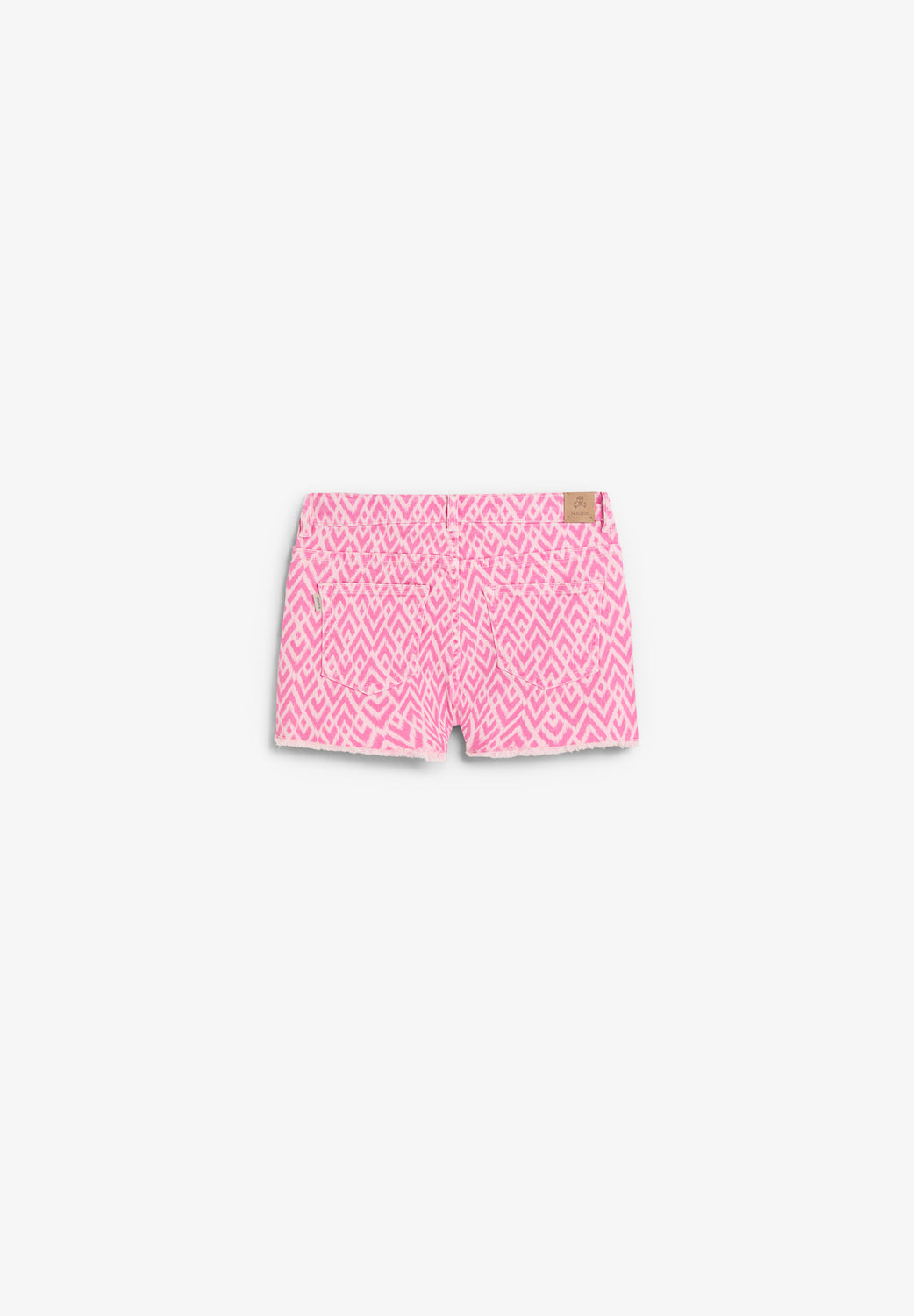 Shorts confeccionados en algodón ligeramente elástico. Slim fit. Estampado ikat en contraste. Trabillas en la cintura. Cierre con cremallera y botón. Detalle bajo desflecado, logo en la parte frontal.