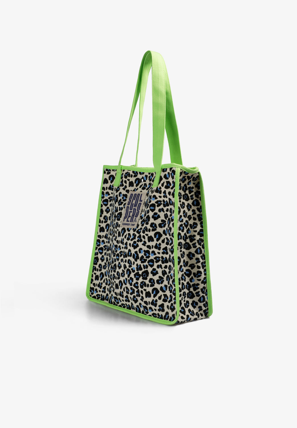 Bolsa confeccionada en mezcla de algodón. Tejido animal print. Asas y costuras a contraste. Cierre con botón y bolsillo interior.