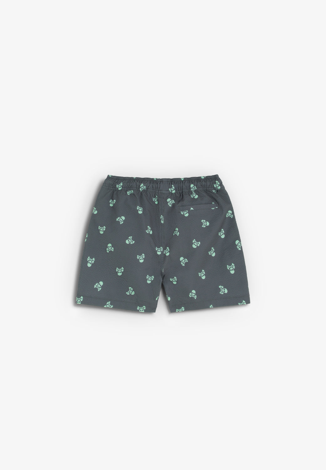 Bañador con cinturilla elástica y cordón ajustable. Estampado de calaveras a contraste. Detalle logo en el bajo. Bolsillo trasero.