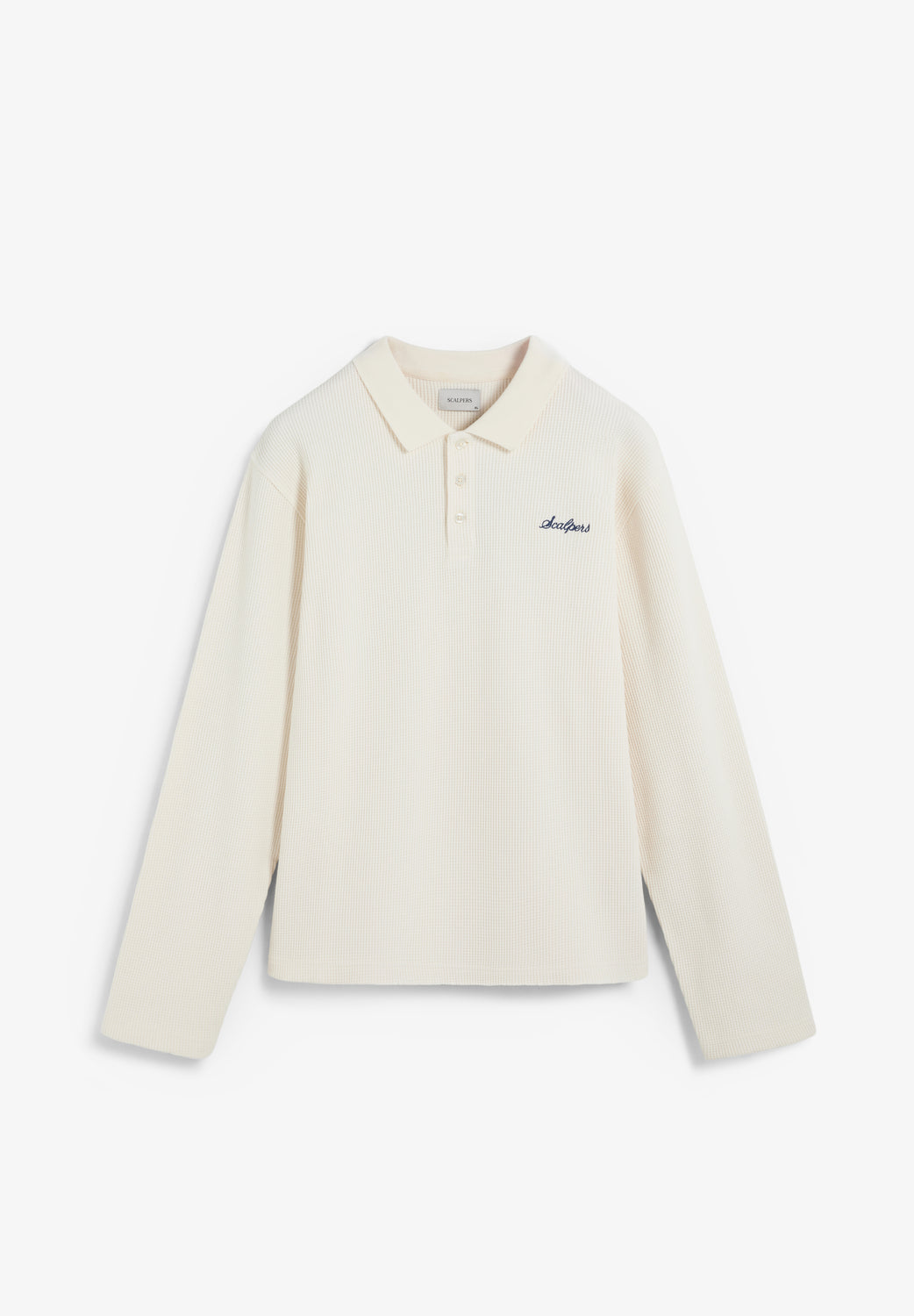 Polo confeccionado en tejido waffle 100% algodón BCI. Regular Fit. Cuello de polo en rib y manga larga. Detalle bordado en el pecho.