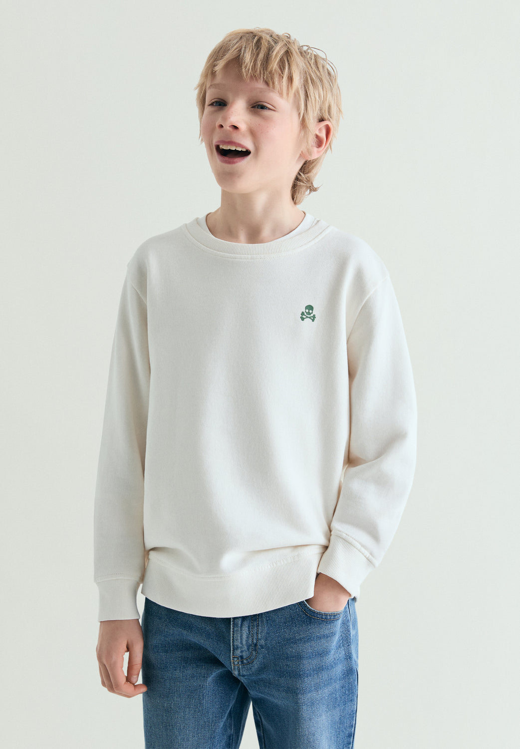 Sudadera confeccionada en 100% algodón . Regular Fit. Cuello redondo y manga larga. Estampado trasero y detalle calavera bordada en el pecho. Acabados en rib.