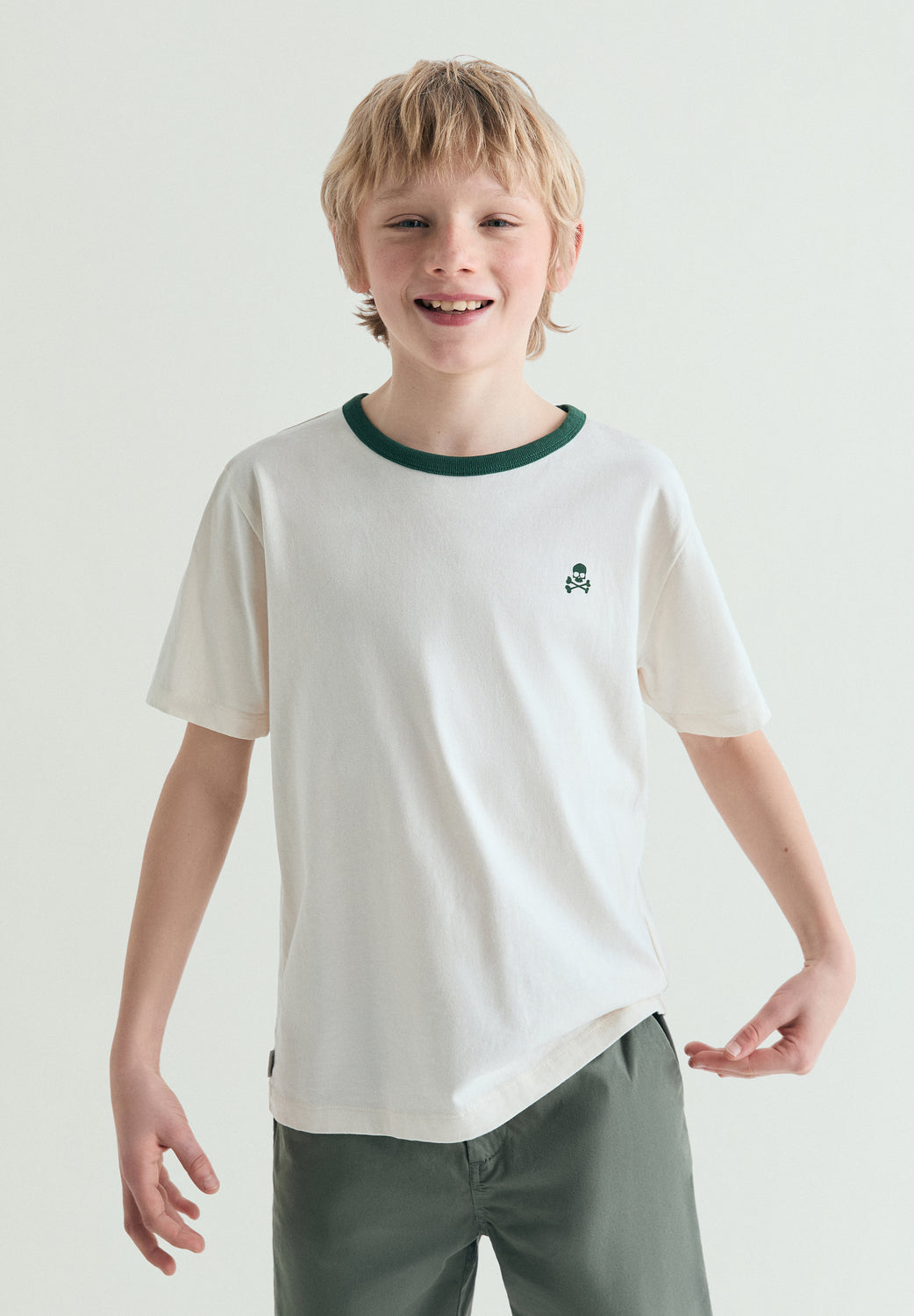 Camiseta de manga corta con cuello redondo a contraste confeccionada en 100% algodón . Estampado de limones en la espalda y detalle de logo en el pecho.