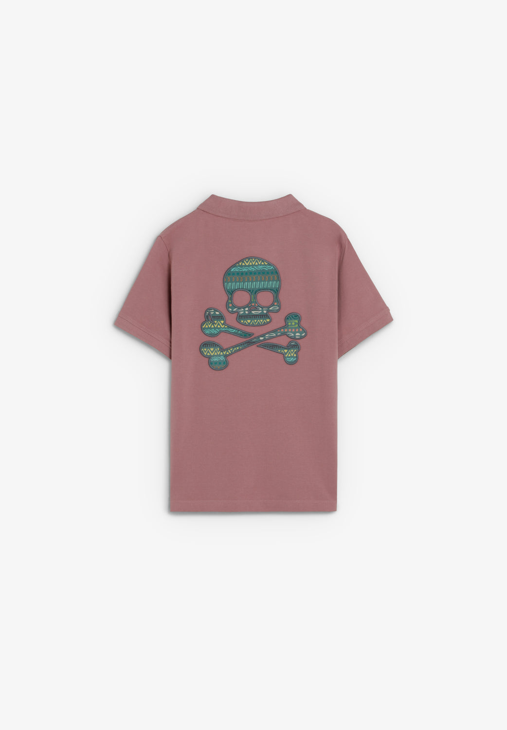 Polo confeccionado en 100% algodón BCI. Cuello polo con botones y estampado calavera colorida en la espalda. Parche decorativo con logo de la marca en el bajo. Corte regular fit.