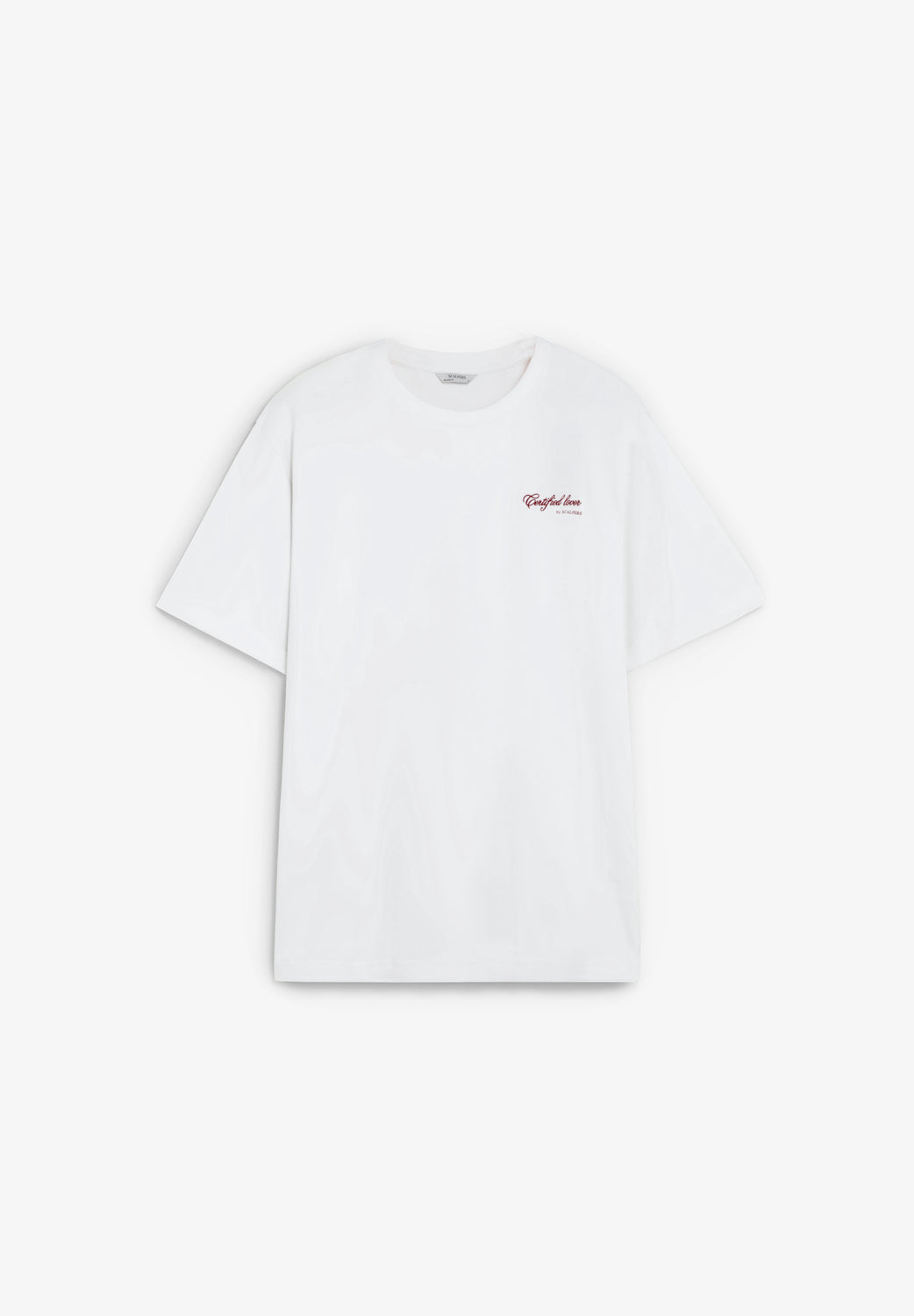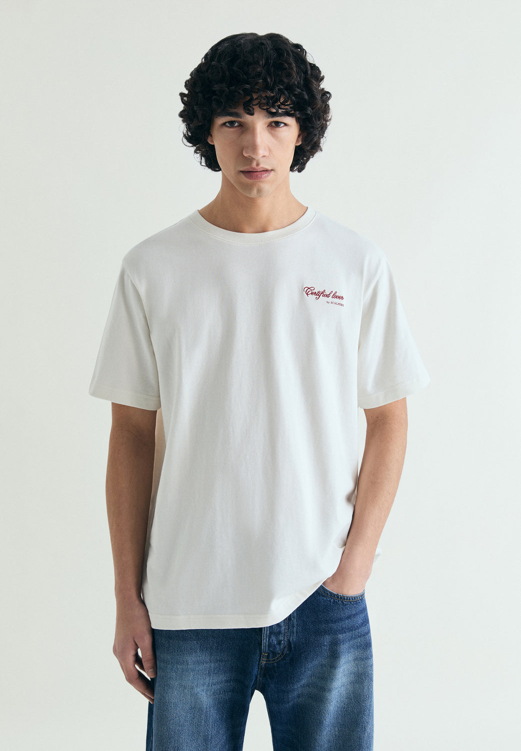 Camiseta confeccionada en 100% algodón BCI. Detalle bordado en pecho y print trasero. Cuello redondo y manga corta.