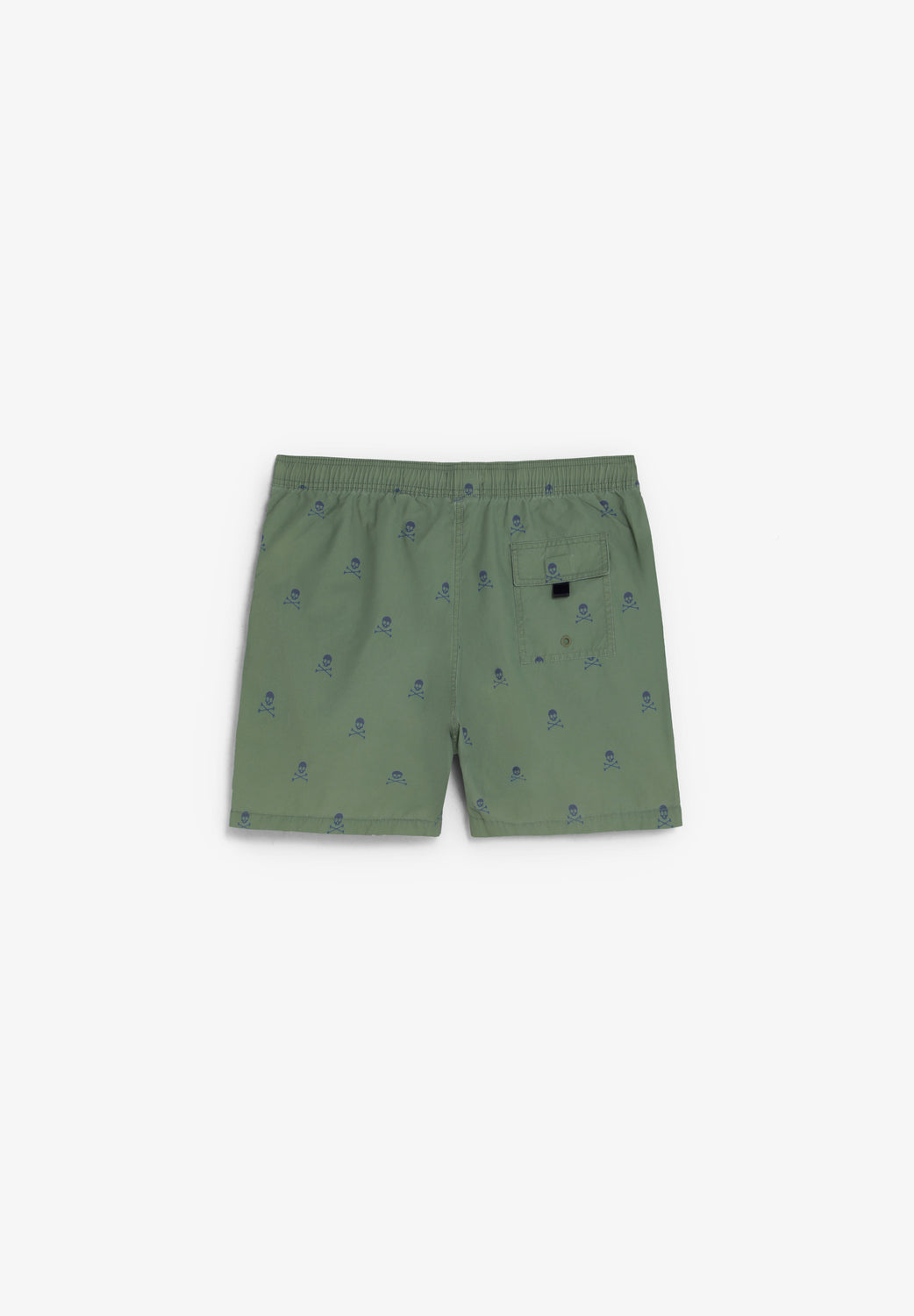 Bañador con cinturilla elástica y cordón ajustable. Bolsillos laterales. Estampado de calaveras a contraste. Bolsillo trasero.