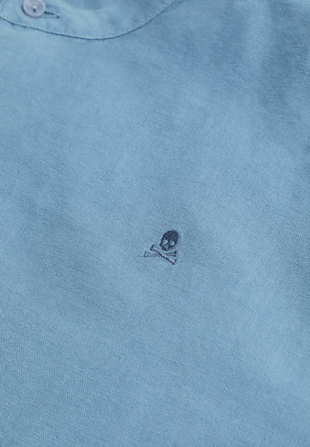 Camisa confeccionada en mezcla de lino y algodón. Regular fit. Cuello mao y manga larga con puños abotonados. Cierre frontal con botones. Calavera bordada a tono en el pecho.