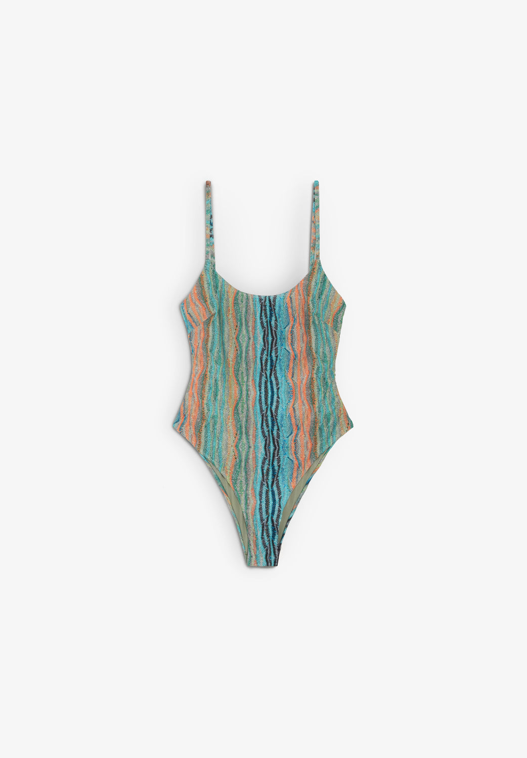 Bañador confeccionado en estampado multicolor con forro interior. Cuello redondo y tirantes finos. Espalda abierta.