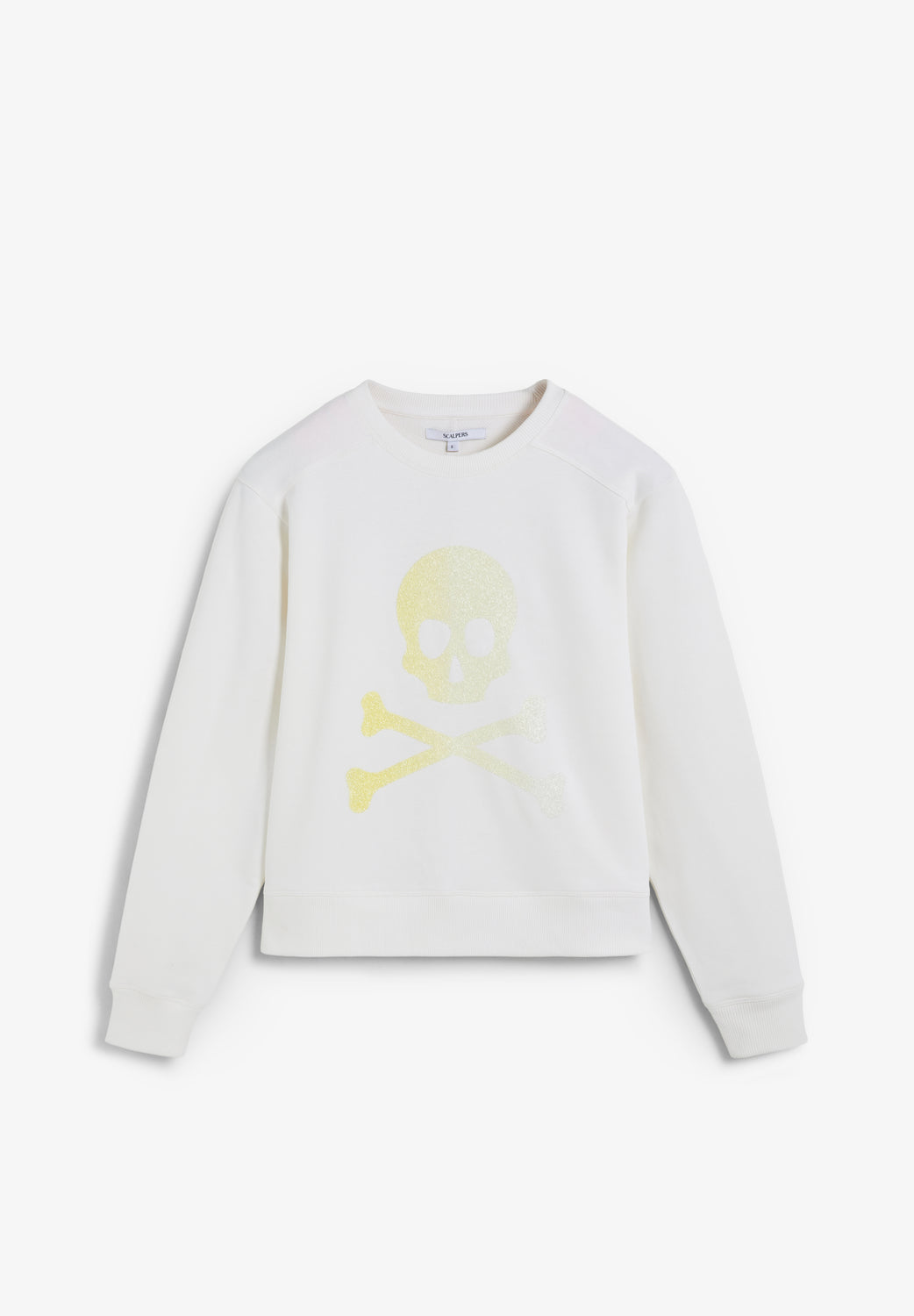 Sudadera confeccionada en 100% Algodón BCI. Corte Regular fit. Cuello redondo. Manga larga. Acabados en rib. Detalle de calavera glitter en la parte delantera.