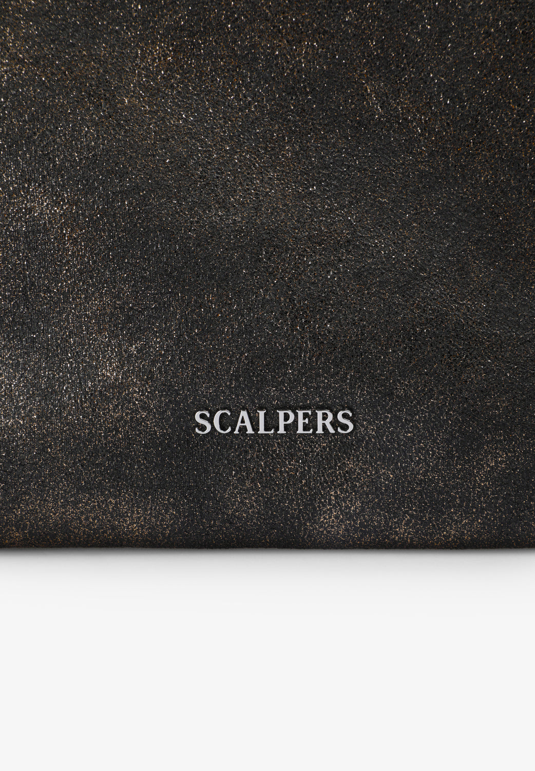 Bolso shopper metalizado confeccionado en algodón con efecto desgastado. Forro interior con bolsillo con cremallera. Cartera a juego extraíble. Cierre con botón imantado. Detalle de logo en frontal.