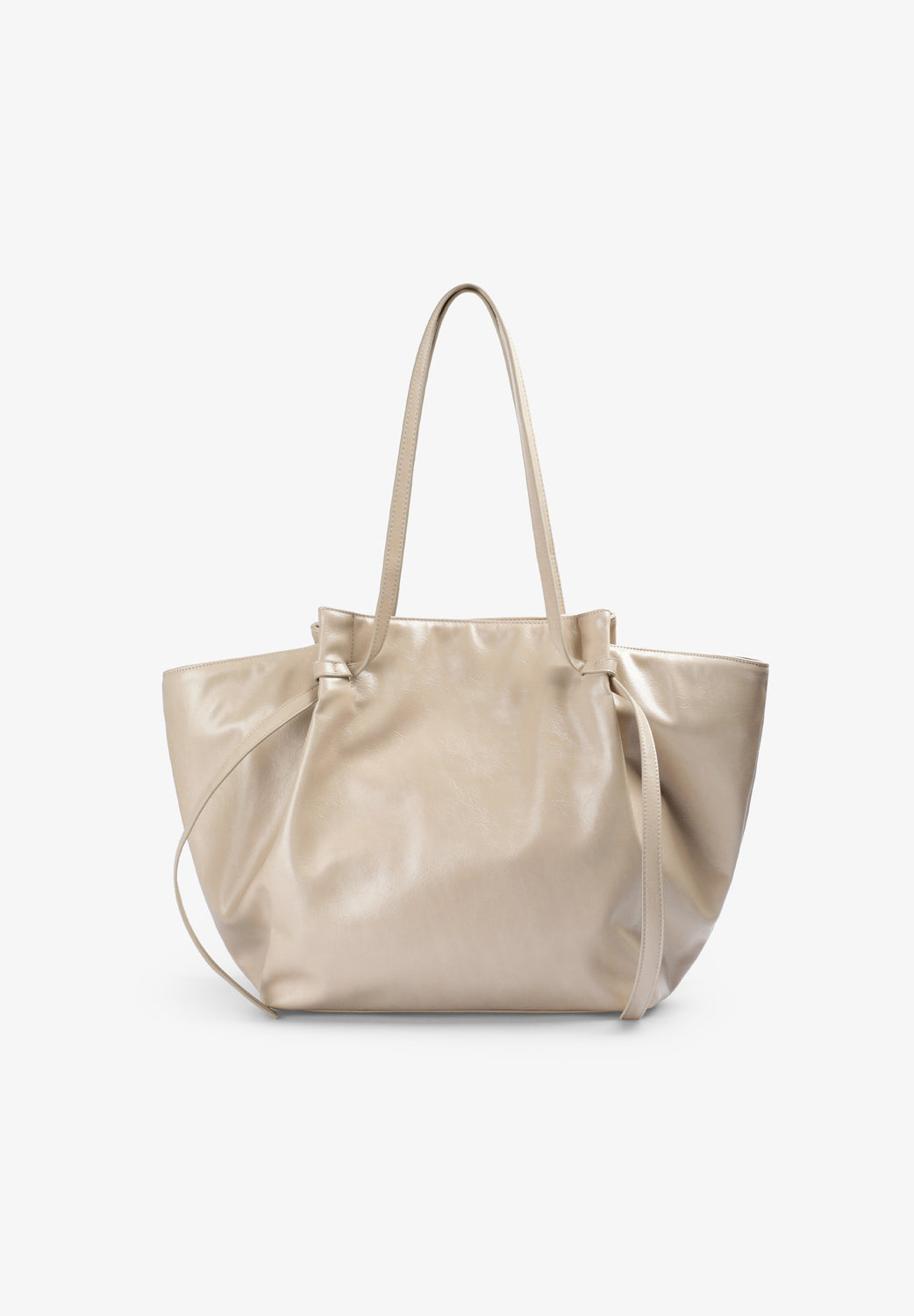 Bolso shopper confeccionado en PU. Forro interior. Doble bolsillo con cremallera. Tiras ajustables laterales. Con cartera a juego interior