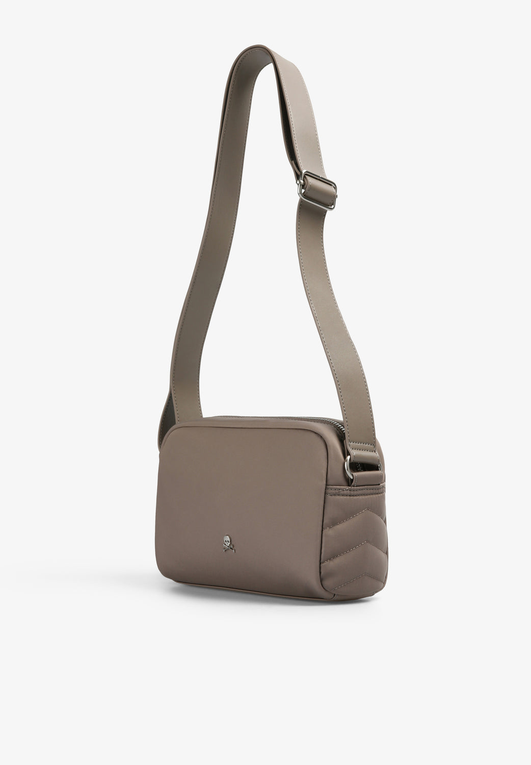 Bolso bandolera acolchado. Cierre con cremallera. Asa larga regulable. Detalle parche metálico con logo en frontal. Forro interior y bolsillo con cremallera.