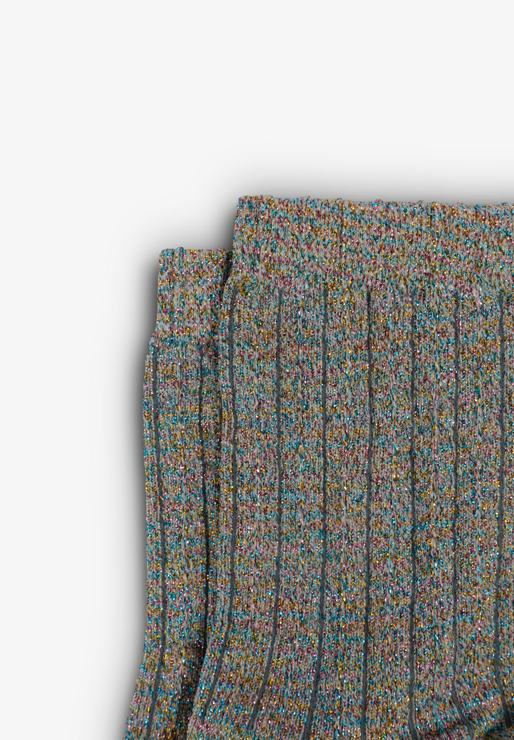 Calcetines de caña corta en canalé. Hilo metalizado multicolor. Detalle logo en la planta.