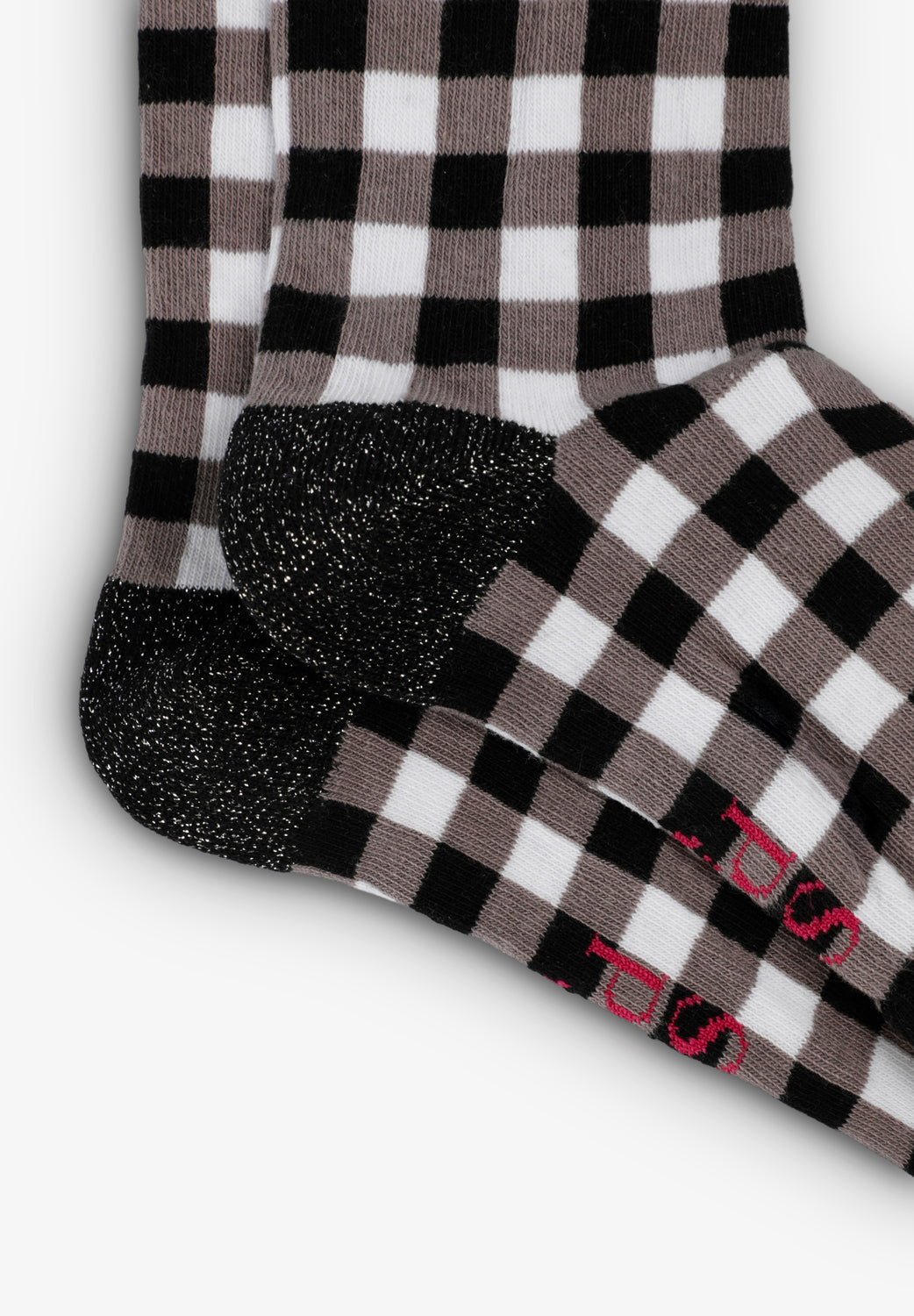 Calcetines de caña corta estampado vichy. Detalle ribete, talón y puntera metalizado a contraste. Detalle logo en la planta.