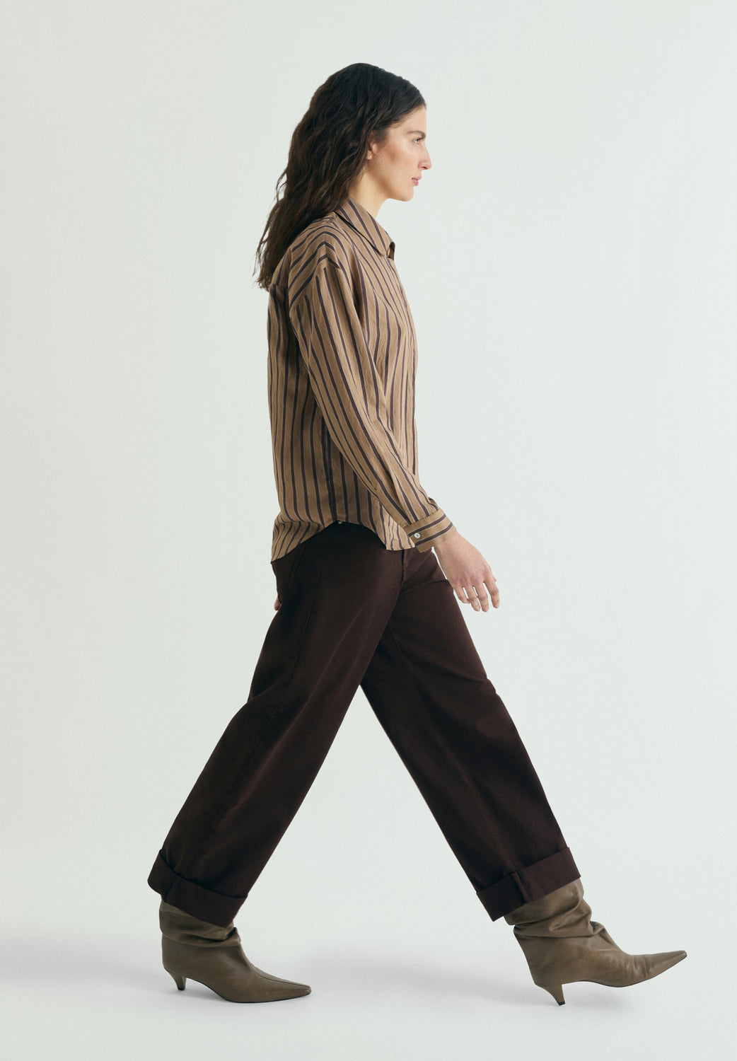 Pantalón denim confeccionado el algodón BCI ligeramente elástico. Regular fit, cierre mediante cremallera y botón. Trabillas en cintura. Detalle de bajo doblado.