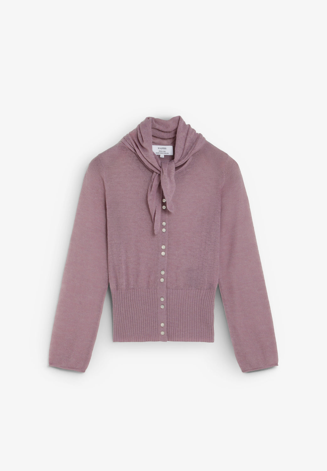 Cárdigan confeccionado en mezcla de lana. Detalle de lazada en el cuello. Manga larga. Cinturilla ceñida en canalé. Cierre mediante botones frontales.