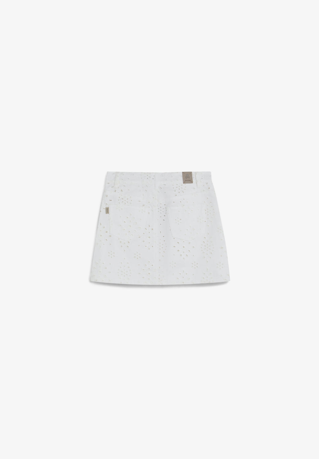 Falda mini confeccionada en 100% algodón BCI. Tejido perforado. Slim Fit. 5 bolsillos.